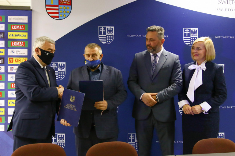 Samorząd Województwa Świętokrzyskiego po raz kolejny stawia na promocję poprzez sport. Tym razem w tych działaniach partnerować będzie Klub Sportowy Vive Kielce, który w zamian za promocję naszego regionu otrzyma 400 tysięcy złotych. Umowę w tej sprawie podpisali dziś marszałek Andrzej Bętkowski, członek Zarządu Województwa Tomasz Jamka oraz wiceprezes zarządu Klubu Sportowego Vive Kielce Tadeusz Dziedzic. W wydarzeniu udział wzięła także wicemarszałek Renata Janik.