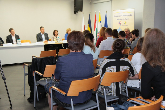Podczas spotkania młodzi ludzie mieli możliwość zadawania pytań osobom uczestniczącym w konferencji. Dotyczyły one różnych sfer życia w województwie świętokrzyskim i naszym kraju. I tak np. Grzegorz Bień Świętokrzyski Wicekurator Oświaty i Elżbieta Dudek z ŚCDN przybliżyli problematykę związaną z funkcjonowaniem systemu edukacji w Polsce. Młodzież pytała m.in. o etapy kształcenia w szkołach, jak długo trwa rok szkolny oraz czy w polskich szkołach jest bezpiecznie. Z kolei marszałek Adam Jarubas opowiadał uczniom o zasadach funkcjonowania samorządu lokalnego, wyborach i kompetencjach Zarządu Województwa oraz Sejmiku. Wytłumaczył także młodzieży, skąd pochodzi nazwa województwa świętokrzyskiego.
