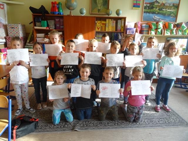 Na zdjęciu u góry – uczniowie ze szkoły w Sandomierzu z rozwiązanymi przez siebie krzyżówkami, poniżej – z baśniowe dzieci z Nagłowic.