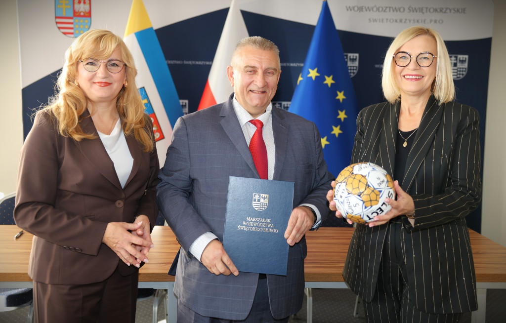 Marszałek Renata Janik oraz członek Zarządu Anita Koniusz podpisały dzisiaj z przedstawicielami klubów i stowarzyszeń sportowych 5 umów na wsparcie świętokrzyskiego sportu. Zarząd Województwa Świętokrzyskiego przyznał dotacje na łączną kwotę 400 tys. zł. Środki te będą wsparciem zarówno dla organizacji wydarzeń o randze mistrzowskiej, jak i kluczowych programów szkoleniowych dla dzieci i młodzieży w regionie.