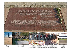 Dziś z okazji 60. rocznicy podpisania Powszechnej Deklaracji Praw Człowieka o godz. 19.30 przed płytą Praw Człowieka w Kielcach, ATD Czwarty Świat ogłosi apel mający na celu zmobilizowanie społeczeństwa do przyspieszenia ratyfikacji przez Polskę zrewidowanej Europejskiej Karty Społecznej.