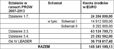 Na wdrażanie ww. działań województwo świętokrzyskie otrzyma w latach 2007-2013 środki (ogółem wkład publiczny):
