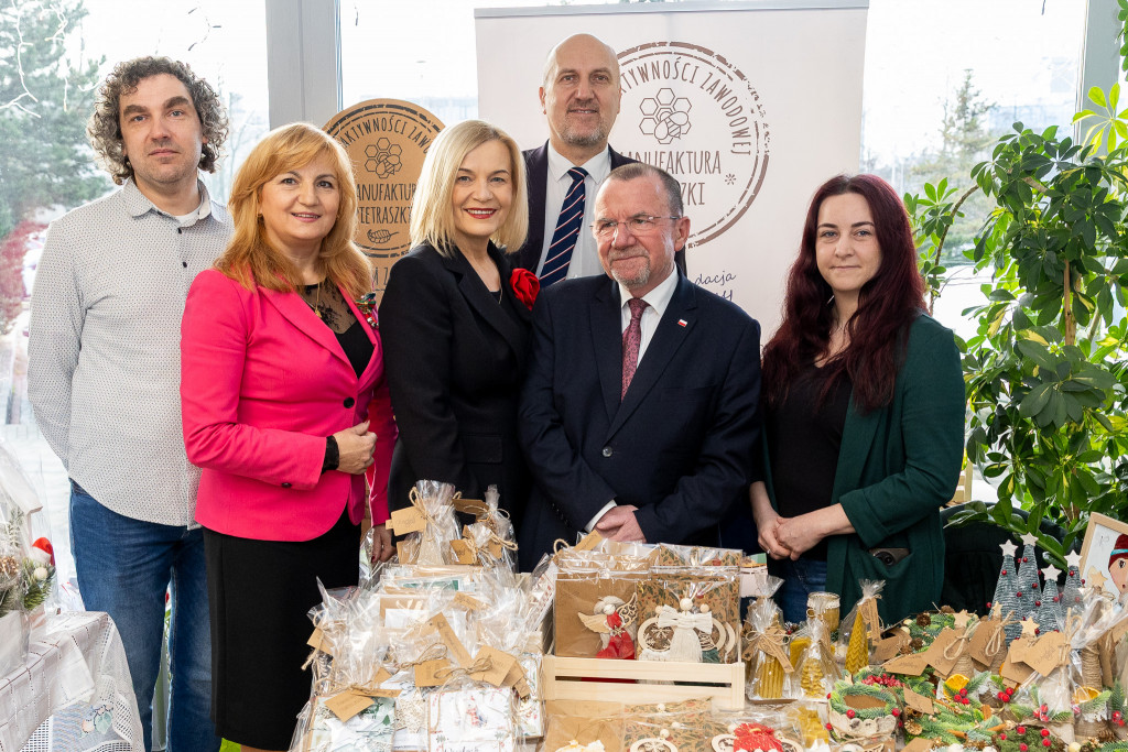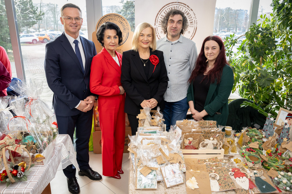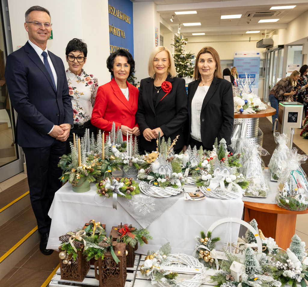 Ponad 30 podmiotów ekonomii społecznej rozpoczęło dziś dwudniowy Bożonarodzeniowy Kiermasz Ekonomii Społecznej. Uroczystego otwarcia wydarzenia, które jednocześnie odbywa się w naszym Urzędzie oraz aż jedenastu instytucjach publicznych w Kielcach, dokonali marszałek Renata Janik, wicemarszałkowie Grzegorz Socha i Marek Bogusławski, członkowie Zarządu Anita Koniusz i Andrzej Pruś, wiceprzewodnicząca Sejmiku Magdalena Zieleń oraz sekretarz Województwa Mariusz Bodo – podkreślając tym samym kluczową rolę kiermaszu w promowaniu idei wsparcia społecznego w regionie.