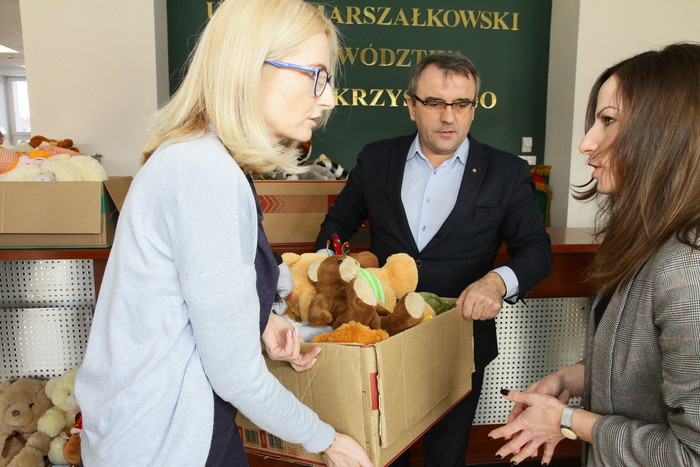 Do podopiecznych dziewięciu świetlic środowiskowych trafiły artykuły szkolne, książki i maskotki zebrane podczas II Koncertu Charytatywnego „Marszałkowskie Kolędowanie – Nie ma zimy w nas!”. Uroczyste przekazanie darów odbyło się w poniedziałek, 26 lutego w Urzędzie Marszałkowskim Województwa Świętokrzyskiego w Kielcach z udziałem Piotra Żołądka, członka Zarządu Województwa i Karoliny Jarosz, wicedyrektor Regionalnego Ośrodka Polityki Społecznej.