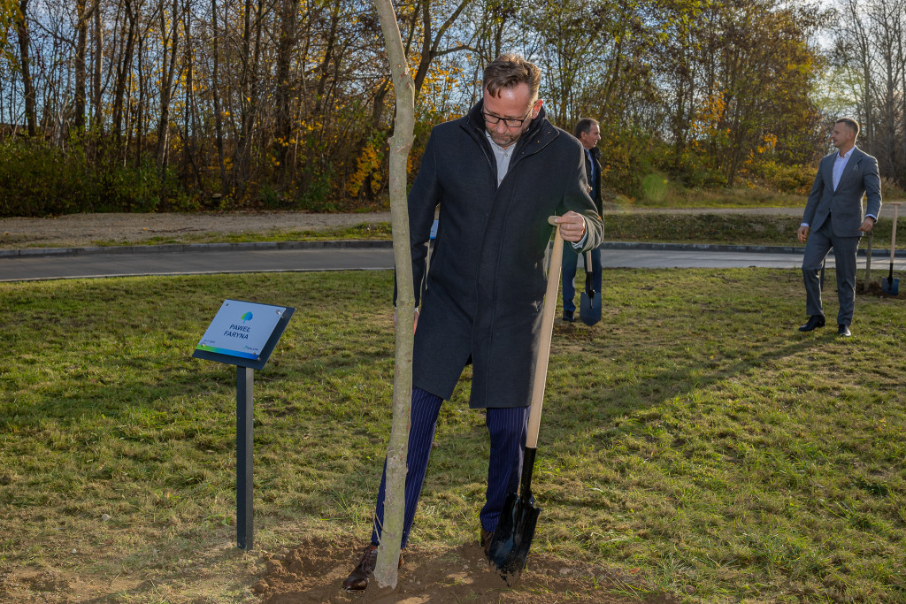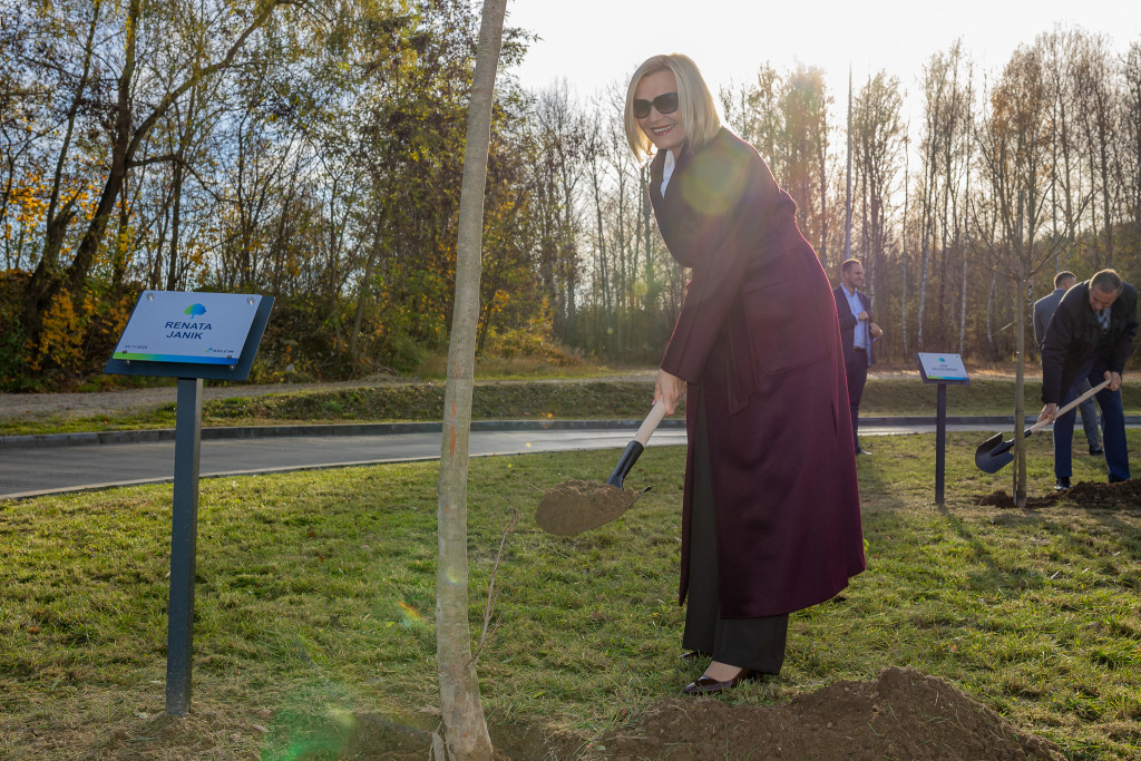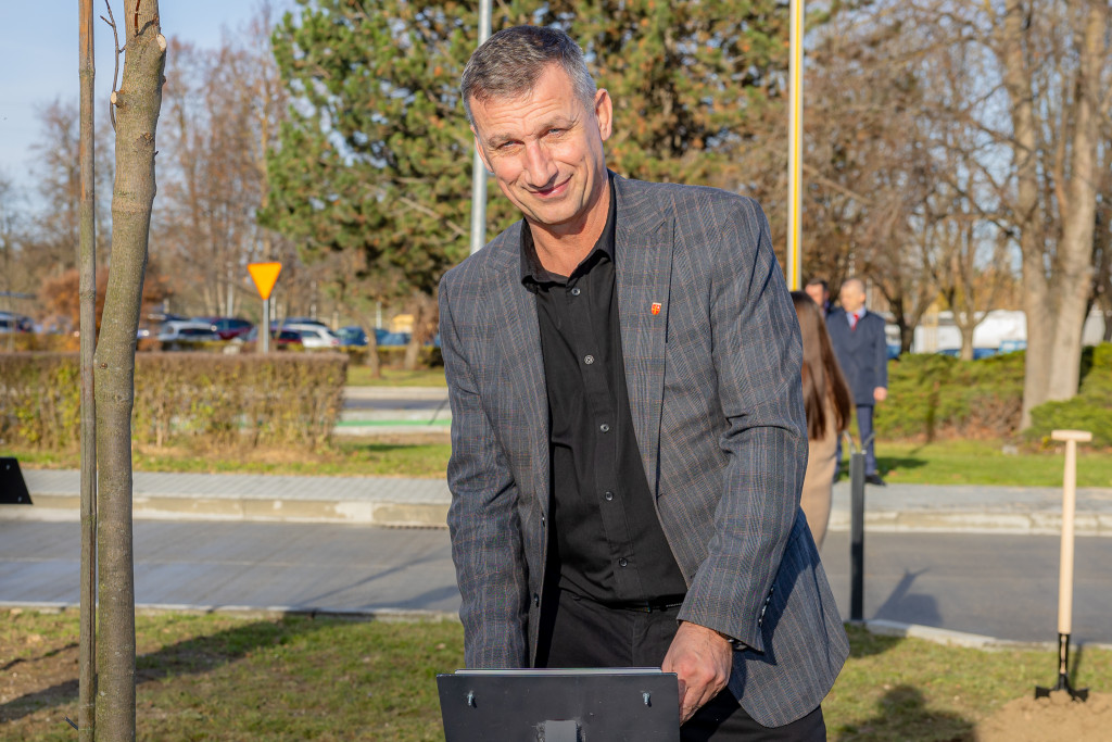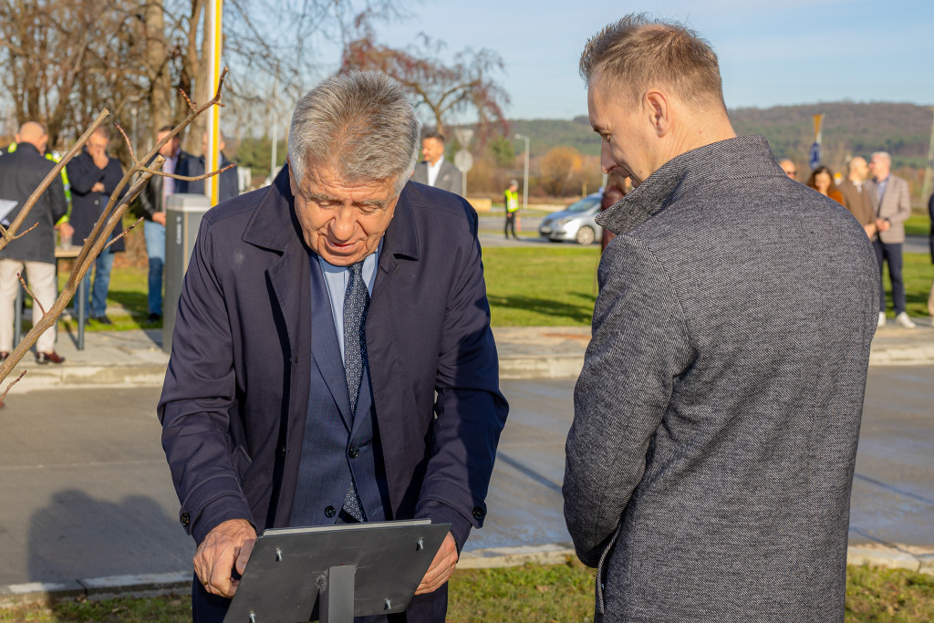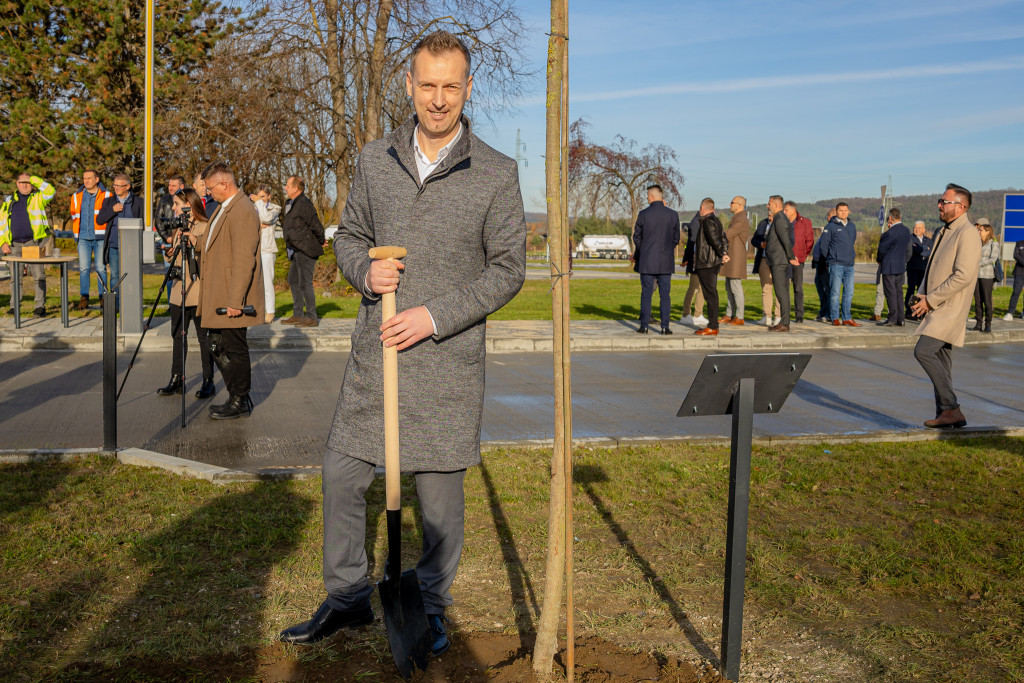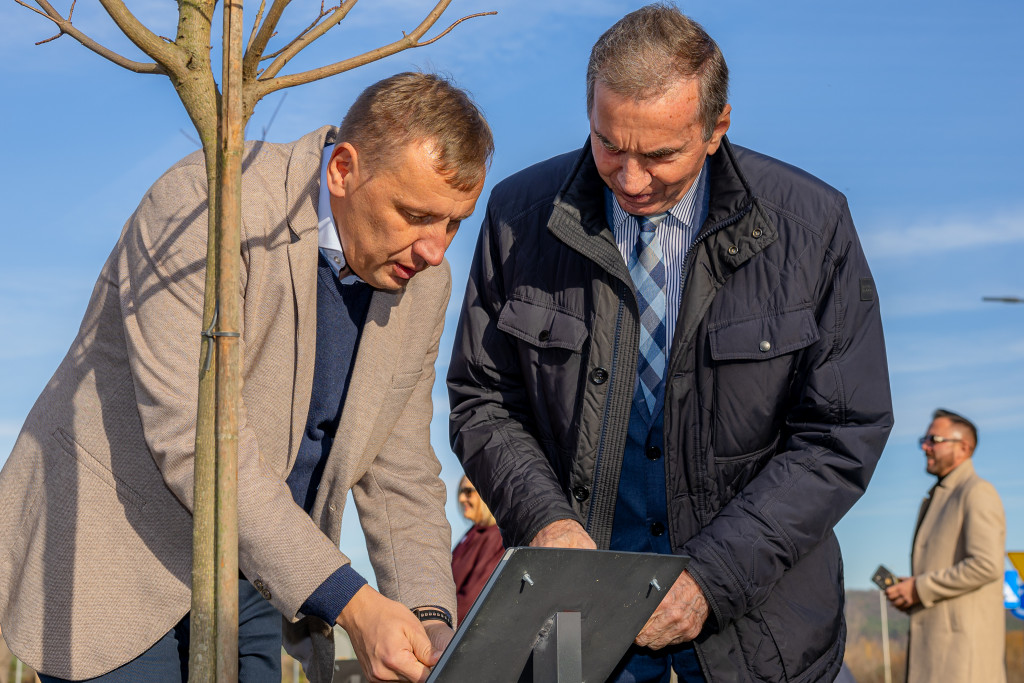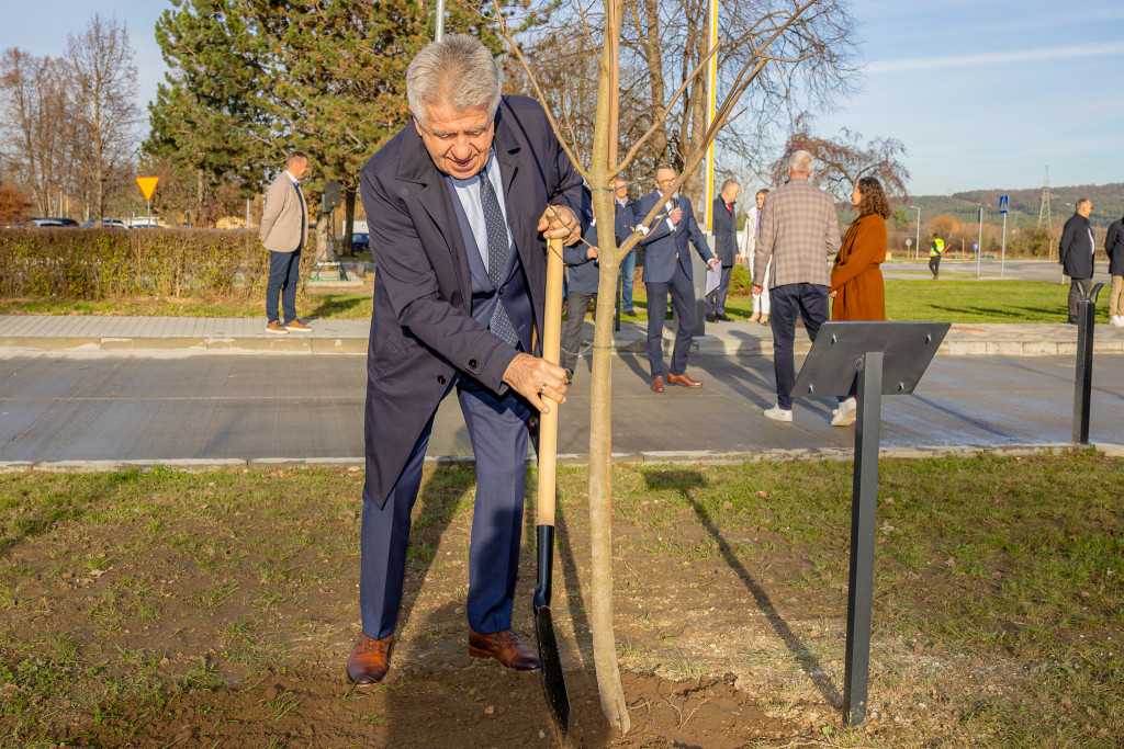 Po powitaniu gości nastąpiło uroczyste przecięcie wstęgi, a tuż po nim symboliczne posadzenie drzew z pamiątkowymi tabliczkami. W uroczystościach tych wzięli udział przedstawiciele Cementowni wraz z zaproszonymi gośćmi, w tym m.in. marszałek Renata Janik, prezes Cementowani Małogoszcz Maciej Sypek, starosta jędrzejowski Paweł Faryna oraz burmistrz miasta i gminy Małogoszcz Paweł Król.