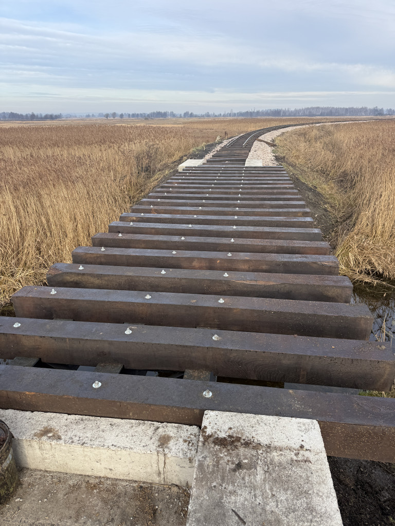 – most Skowronno. Ten kluczowy obiekt inżynieryjny przeszedł kompletny remont – od piaskowania konstrukcji stalowej po montaż nowych mostownic i szyn;