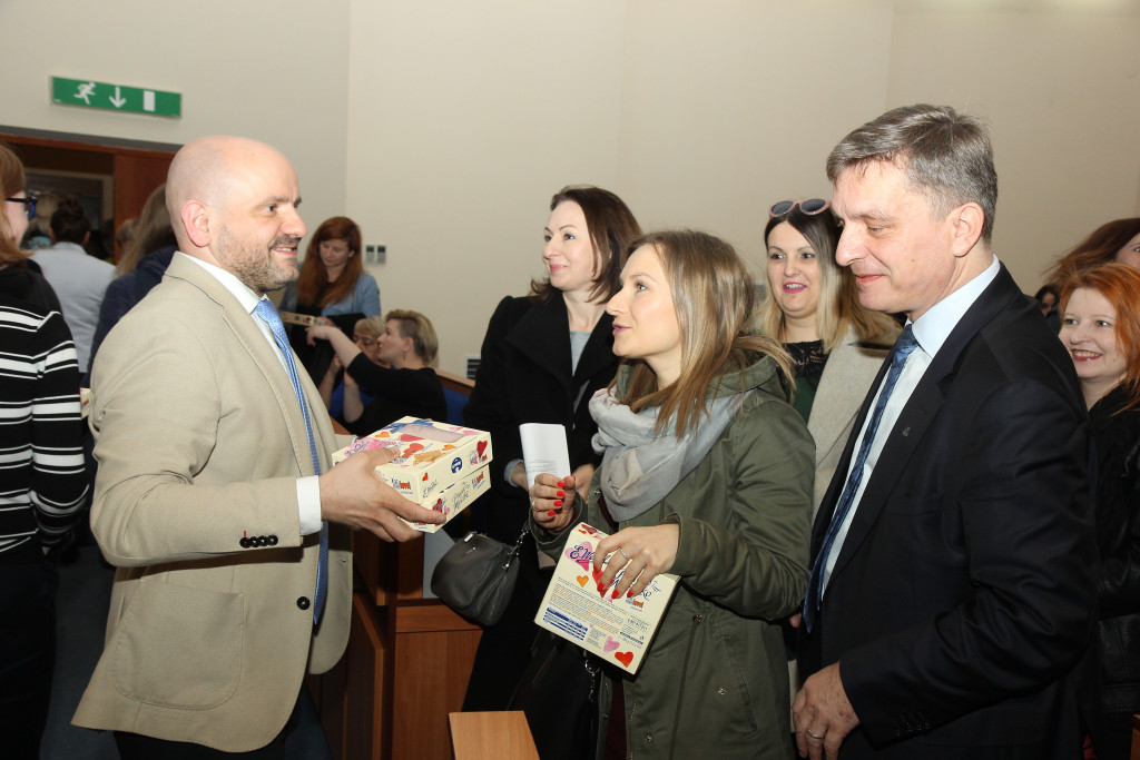 Dzień Kobiet to jedno z najbardziej popularnych w Polsce świąt. Ustanowione zostało w 1910 r. jako wyraz szacunku dla ofiar walki o równouprawnienie kobiet w Stanach Zjednoczonych; w Polsce obchodzone było na wyjątkowo szeroką skalę do 1993 roku, ale i dziś ma bardzo wielu zwolenników w naszym kraju. O dzisiejszym święcie nie zapomnieli marszałek Andrzej Bętkowski, przewodniczący Sejmiku Andrzej Pruś oraz członkowie Zarządu Województwa Marek Jońca i Mariusz Gosek, którzy wszystkim paniom pracującym w Urzędzie Marszałkowskim złożyli wiele serdecznych życzeń, obdarowując je czekoladkami.