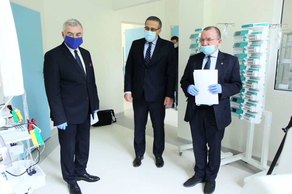 Pierwszy sprzęt medyczny, na kwotę prawie 2, 5 mln zł, zakupiony ze środków unijnych w ramach działań związanych z walką z pandemią koronawirusa trafił już do Wojewódzkiego Szpitala Specjalistycznego im. św. Rafała w Czerwonej Górze. Nową aparaturę marszałkowi Andrzejowi Bętkowskiemu i wicemarszałkowi Markowi Bogusławskiemu zaprezentował dyrektor placówki Youssef Sleiman.