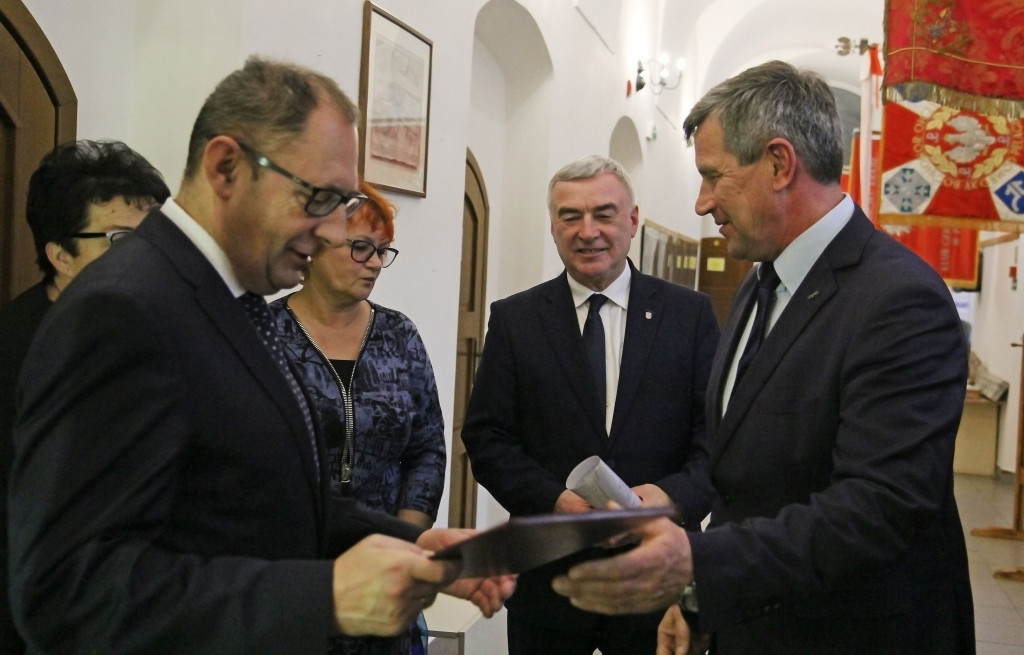 Przekazanie umowy na dofinansowanie projektu było jednym z elementów wizyty gospodarskiej marszałka Andrzeja Bętkowskiego w Pińczowie. Z włodarzami oraz radnymi powiatu i miasta, a także przedstawicielami instytucji kultury i zdrowia rozmawiał o najważniejszych przedsięwzięciach, między innymi inwestycjach drogowych oraz kulturalnych, w tym remoncie zabytkowej kaplicy św. Anny w Pińczowie.