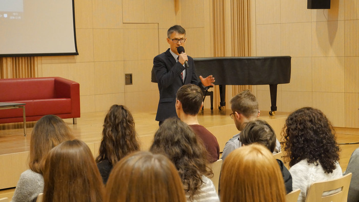 Było to już szóste z cyklu spotkań promujących naukę języków obcych wśród młodzieży z regionu świętokrzyskiego. – Do tej pory stawialiśmy nacisk na język jako konwersację, wypracowując z instytucjami, których statutowym obowiązkiem było propagowanie nauki języka, kształcenie nauczycieli. W tym momencie język traktujemy jako narzędzie dla rozwoju zawodowego, jako warunek niezbędny w zawodzie lekarza. Dlatego gościmy dziś przedstawicieli Świętokrzyskiego Centrum Onkologii w Kielcach – mówił Andrzej Łukasik, doradca marszałka ds. międzynarodowych.