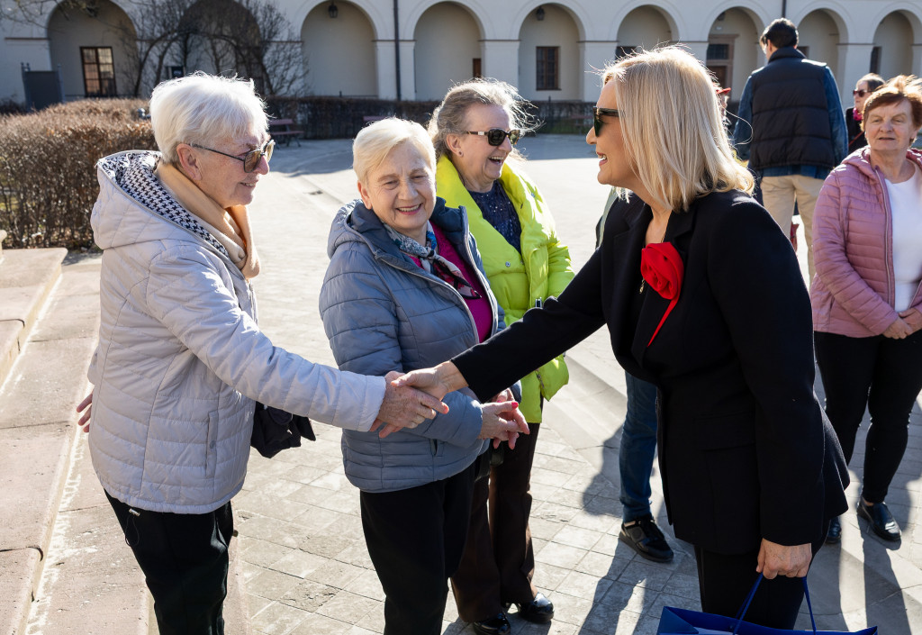 – Jest mi niezmiernie miło, że mogę dziś być z Wami podczas tego wyjątkowego wydarzenia – „Dzień seniora – spotkania z kulturą”. Dzisiejsze spotkanie to nie tylko okazja do wspólnego zwiedzania pięknych miejsc naszego miasta i uczestnictwa w wydarzeniach kulturalnych, ale przede wszystkim czas budowania relacji, dzielenia się doświadczeniem i wzajemnego inspirowania się – podkreślała Renata Janik. – Seniorzy to nieocenione źródło wiedzy, mądrości i tradycji. Wasze zaangażowanie w życie społeczne jest dla nas ogromną wartością. Jesteście Państwo nie tylko świadkami historii, ale również aktywnymi twórcami teraźniejszości i przyszłości naszych lokalnych społeczności. Projekt „Tworzenie Lokalnych Systemów Wsparcia dla Seniorów” ma na celu właśnie to – wspieranie, integrowanie i docenianie roli seniorów w naszych środowiskach. Chcemy, aby każdy z Was czuł się potrzebny, aktywny i otoczony szacunkiem.