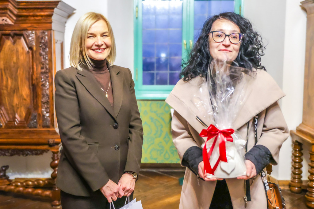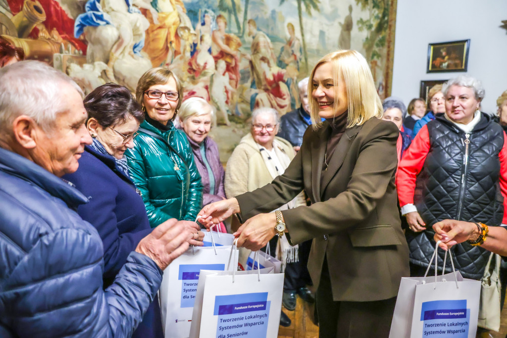 Marszałek Renata Janik przekazała seniorom czujniki dymu mówiąc: – Chcemy również zadbać o Wasze bezpieczeństwo i dlatego przygotowaliśmy dla Państwa praktyczne upominki w postaci czujników dymu. Życzę Państwu dzisiaj wielu pięknych wrażeń, miłych rozmów i wspomnień, które pozostaną z Wami na długo.