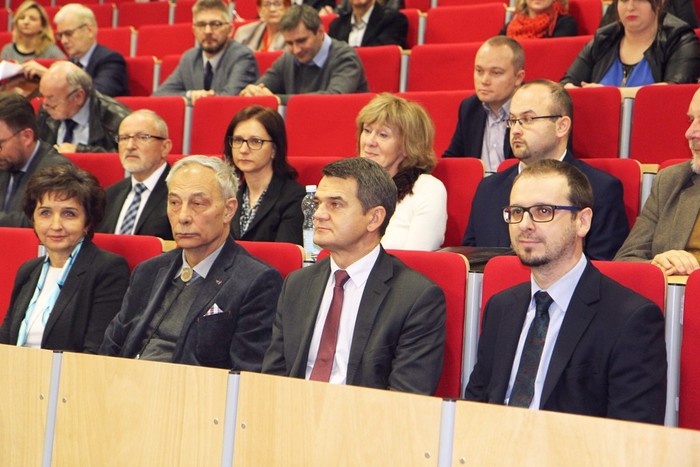 Gości przywitali: Tomasz Janusz, zastępca dyrektora Departamentu Polityki Regionalnej Urzędu Marszałkowskiego Województwa Świętokrzyskiego, rektor Uniwersytetu Jana Kochanowskiego prof. zw. dr hab. Jacek Semaniak oraz prof. dr hab. inż. Wiesław Trąmpczyński, rektor Politechniki Świętokrzyskiej.