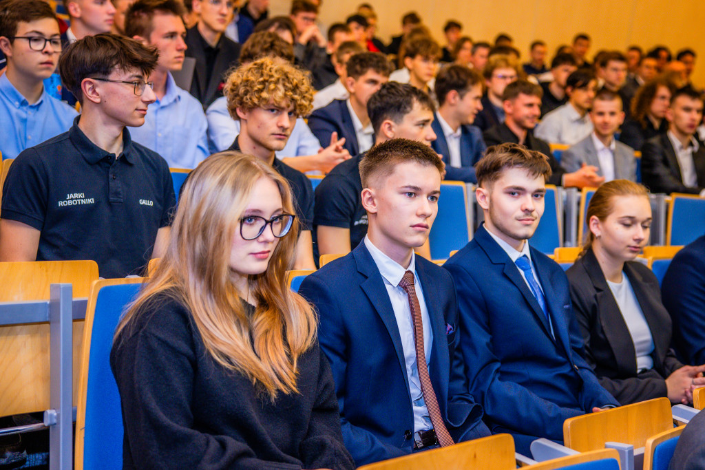 Statystyki bieżącej edycji, rozpoczętej jesienią 2025 roku, robią wrażenie. W porównaniu do ubiegłego roku liczba uczestniczących zespołów wzrosła z 18 do 31, a liczba uczniów zaangażowanych w naukowe zmagania zwiększyła się z 73 do 116 osób. Młodzież prezentowała swoje innowacyjne rozwiązania w siedmiu różnych kategoriach. Efektem tego jest przyznanie 9 nagród zespołowych oraz 5 wyróżnień. Najcenniejsze trofeum – Platynowy Indeks, gwarantujący przyjęcie na studia z pominięciem tradycyjnej procedury rekrutacyjnej – trafiło w ręce aż 32 laureatów ( z 9 zespołów).