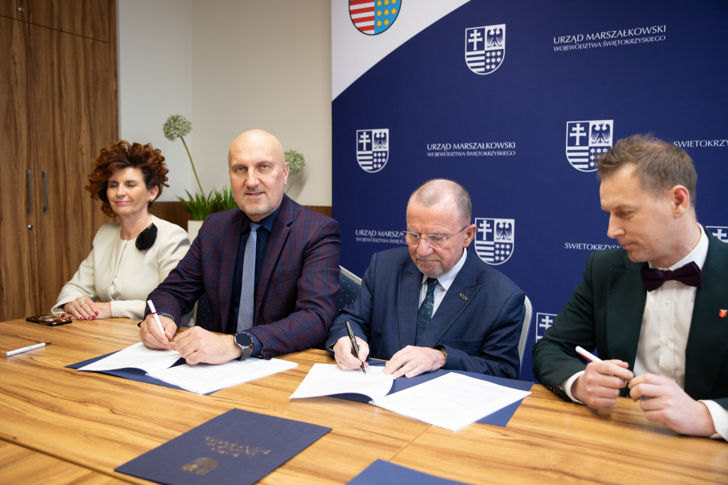 Umowę w imieniu Zarządu Województwa Świętokrzyskiego podpisali wicemarszałkowie Grzegorz Socha oraz Marek Bogusławski, natomiast stronę beneficjenta reprezentował Paweł Król, burmistrz Miasta i Gminy Małogoszcz oraz skarbnik Iwona Szymkiewicz.