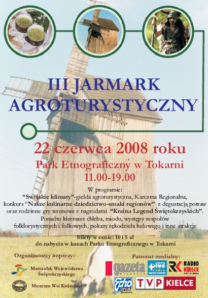 Karczma regionalna serwująca świętokrzyskie przysmaki, finał konkursu na najlepsze produkty i potrawy regionalne, zespoły folklorystyczne i folkowe oraz oferta wakacyjna gospodarstw agroturystycznych to wszystko czekać będzie na zwiedzających Park Etnograficzny w Tokarni w dniu 22 czerwca 2008 r. Już po raz trzeci odbędzie się wówczas Świętokrzyski Jarmark Agroturystyczny a po raz ósmy konkurs „Nasze Kulinarne Dziedzictwo – Smaki Regionów”.