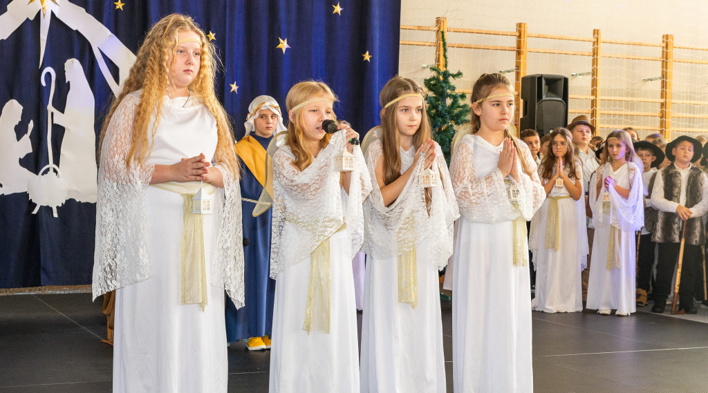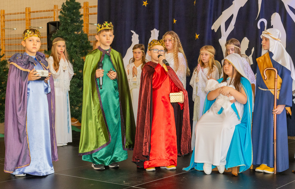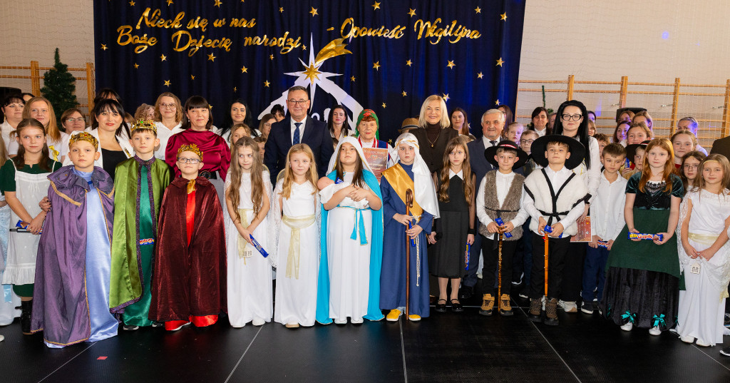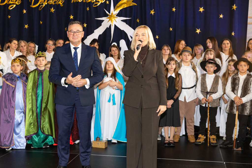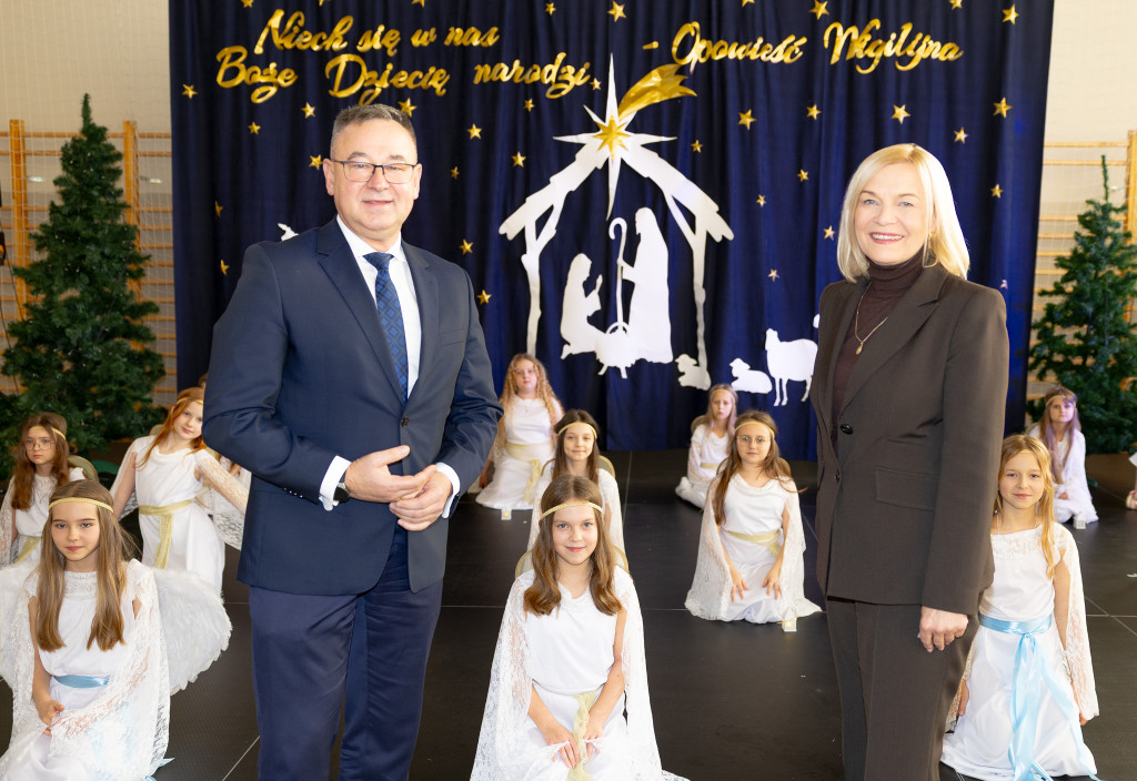 Uroczystość rozpoczęła się od wyjątkowego akcentu artystycznego – poruszających Jasełek przygotowanych przez uczniów ze Szkoły Podstawowej im. Jana Pawła II w Bielinach. Młodzi artyści, z dużym zaangażowaniem, przedstawili historię narodzin Chrystusa, wzbudzając emocje i refleksję wśród zebranych gości.