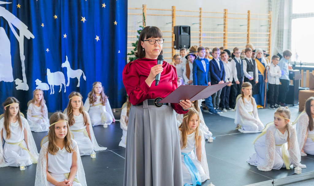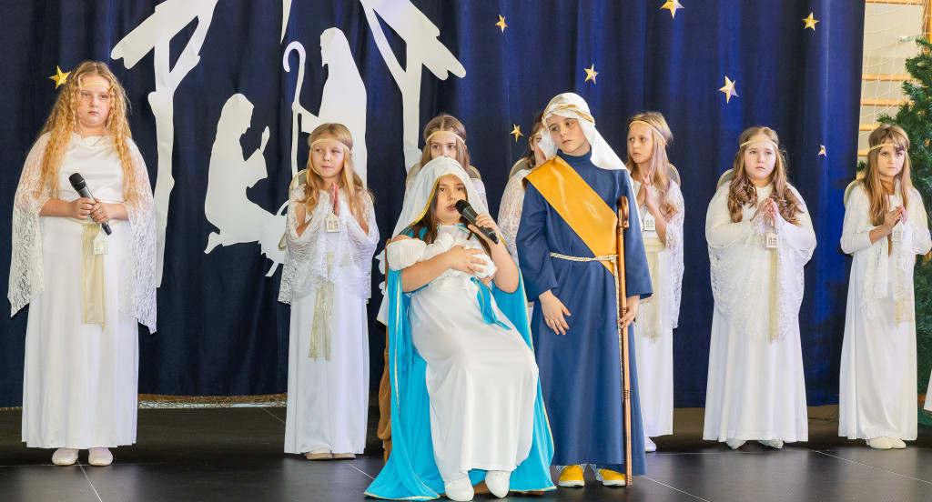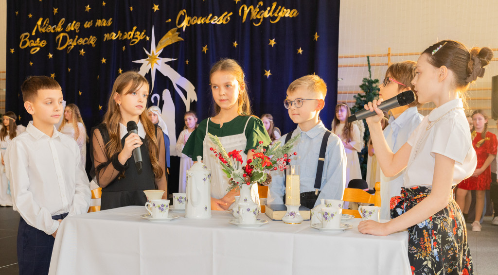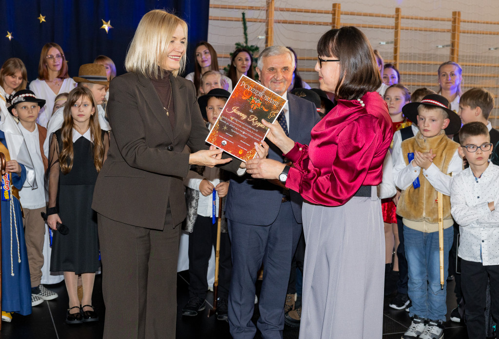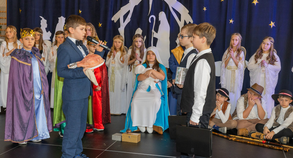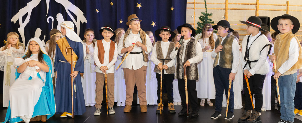 Uroczystość rozpoczęła się od wyjątkowego akcentu artystycznego – poruszających Jasełek przygotowanych przez uczniów ze Szkoły Podstawowej im. Jana Pawła II w Bielinach. Młodzi artyści, z dużym zaangażowaniem, przedstawili historię narodzin Chrystusa, wzbudzając emocje i refleksję wśród zebranych gości.