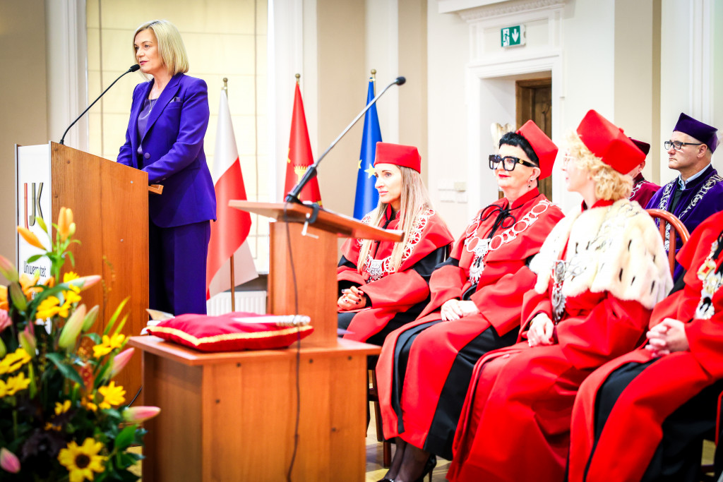 Marszałek województwa Renata Janik, zwracając się do grona profesorskiego uczelni oraz studentów życzyła wszystkim sukcesów w życiu naukowym i aktywnego wspierania rozwoju uniwersytetu.