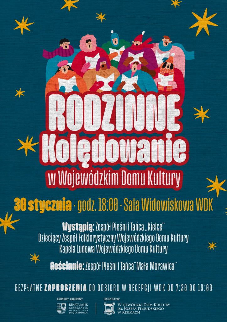 Wojewódzki Dom Kultury w Kielcach zaprasza do udziału w dwóch wyjątkowych wydarzeniach muzycznych które w tym roku wypełnią sale tradycją, radością wspólnego kolędowania i magiczną atmosferą końca okresu bożonarodzeniowego.
