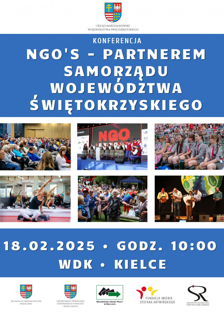 Regionalny Ośrodek Polityki Społecznej Urzędu Marszałkowskiego Województwa Świętokrzyskiego w Kielcach w dniu: 18 lutego 2025 r. organizuje konferencję pn. „NGO’s – Partnerem Samorządu Województwa Świętokrzyskiego”.