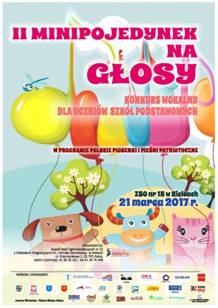 Natomiast w Zespole Szkół Ogólnokształcących nr 15 z Oddziałami Integracyjnymi im. Henryka Sienkiewicza w Kielcach 21 marca odbędzie się Mini Pojedynek na głosy. Regulamin i karta zgłoszenia dostępne na stronie http://zso15.kielce.eu/mpng/regulamin_i_zapisy_mini.html