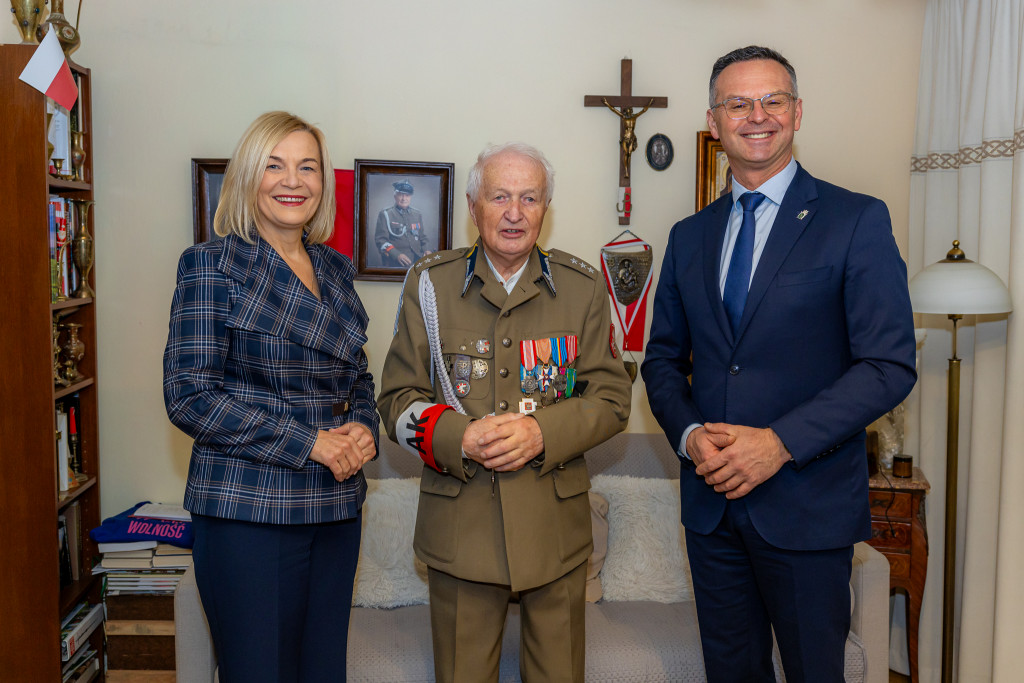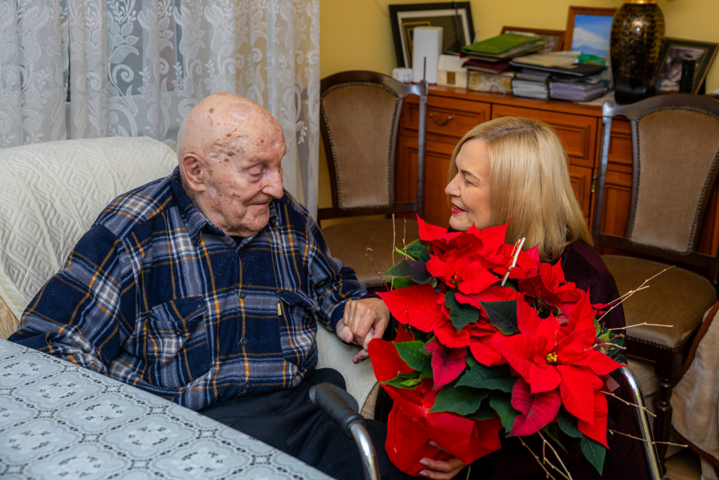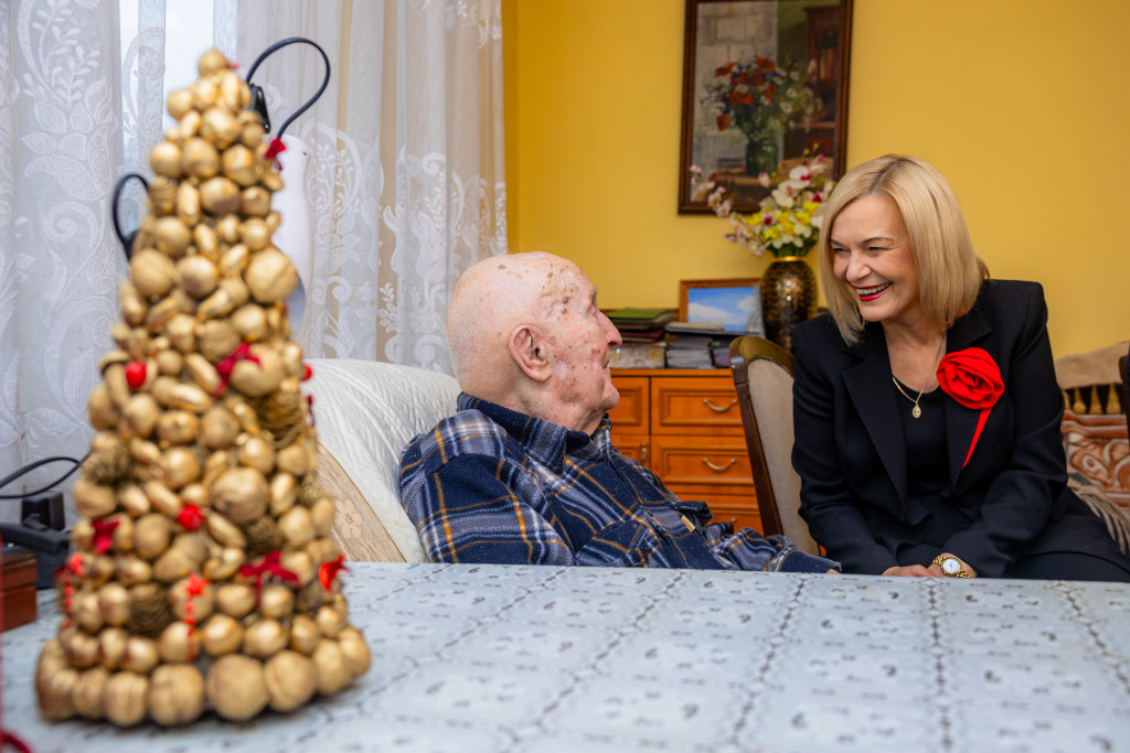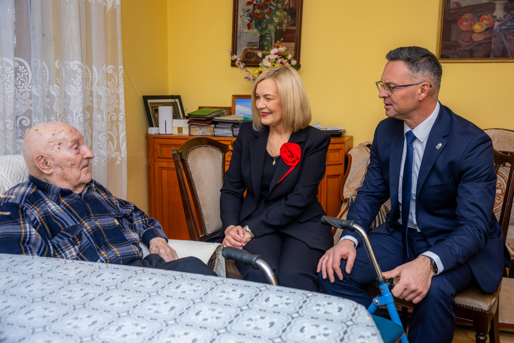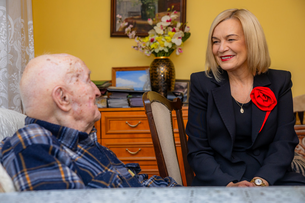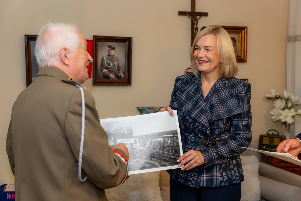 Marszałek Województwa Świętokrzyskiego Renata Janik odwiedziła w przedświątecznym czasie dwóch wyjątkowych mieszkańców Kielc – Andrzeja Jachymczyka „Azjatę” oraz porucznika Jerzego Zawadzkiego „Małego”, przekazując im świąteczne upominki i wyrażając wdzięczność za ich niezwykłe świadectwa historii.