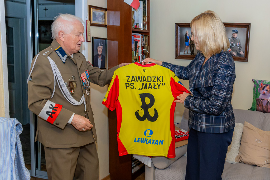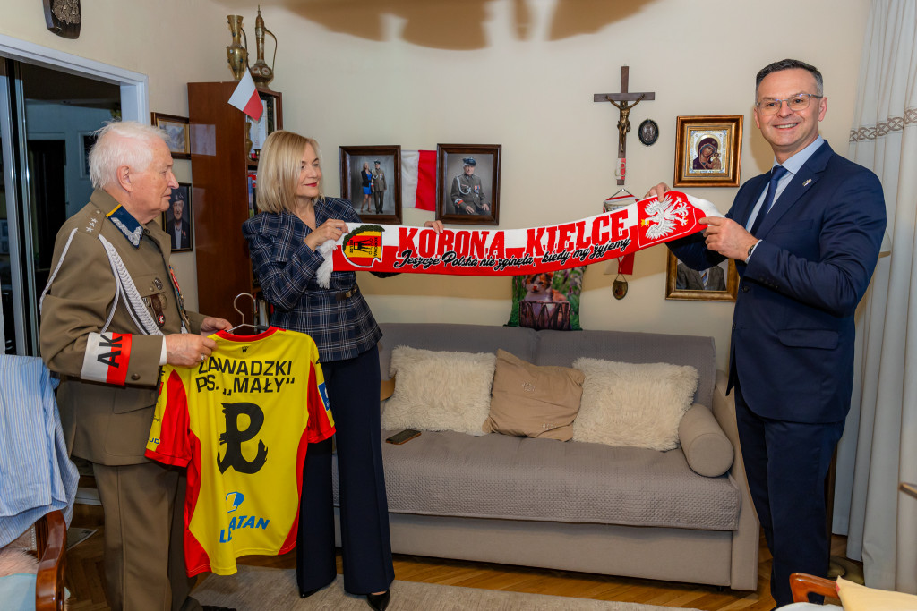 Porucznik Jerzy Zawadzki, urodzony w 1936 roku w Warszawie, jako ośmiolatek walczył w Powstaniu Warszawskim. Po upadku powstania trafił do obozu przejściowego w Pruszkowie, a następnie do obozów na terenie Niemiec. Po wojnie związał swoje życie z Otwockiem, później z Warszawą, a ostatecznie – po skierowaniu do pracy – osiadł w 1955 roku w Kielcach, gdzie założył rodzinę. W Kielcach był jednym z organizatorów NSZZ „Solidarność”, za co w stanie wojennym trafił do internowania. Od lat pełni funkcję wiceprezesa Koła nr 1 Światowego Związku Żołnierzy AK. Znany jest także z działalności społecznej – pomocy osobom bezdomnym, inicjatywy odbudowy Pomnika Niepodległości czy wielu lokalnych przedsięwzięć związanych z historią miasta. Za swoje zasługi został odznaczony Krzyżem Kawalerskim Orderu Odrodzenia Polski. Marszałek Renata Janik, odwiedzając go przed świętami, podkreśliła znaczenie takich spotkań i rolę, jaką porucznik Zawadzki odgrywa w edukowaniu młodego pokolenia.
