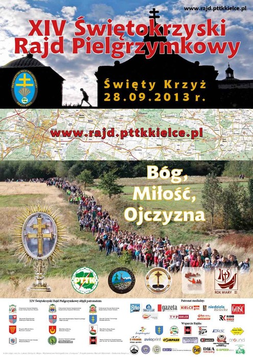 W ostatnią sobotę września, na piętnaście tras pieszych wyruszą uczestnicy XIV Świętokrzyskiego Rajdu Pielgrzymkowego. Wszystkie prowadzić będą – jak co roku – na Święty Krzyż. Zorganizowanej przez Wydział Duszpasterstwa Ogólnego Diecezji Kieleckiej, Oddział Świętokrzyski PTTK w Kielcach oraz Zespół Szkół Katolickich Diecezji Kieleckiej imprezie patronuje marszałek Adam Jarubas.