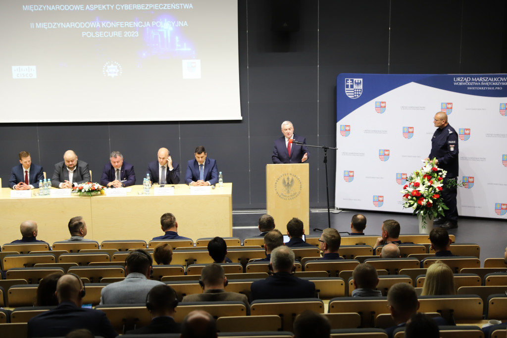 Problematyka cyberbezpieczeństwa, ochrony granic oraz bezpieczeństwa w ruchu drogowym – to główne tematy, wokół których skupiono się podczas towarzyszącej Targom POLSECURE – Międzynarodowej Konferencji Policyjnej. Panel pod nazwą „Międzynarodowe aspekty cyberbezpieczeństwa” zorganizowali wspólnie: polska Policja oraz Marszałek Województwa Świętokrzyskiego. W konferencji wzięły udział delegacje z ponad dwudziestu krajów, a także przedstawiciele samorządu oraz firm sektora nowoczesnych technologii informatycznych, ze szczególnym uwzględnieniem głównych dostawców produktów z zakresu cyberbezpieczeństwa. W wydarzeniu uczestniczył marszałek Andrzej Bętkowski oraz I zastępca Komendanta Głównego Policji, nadinsp. Dariusz Augustyniak.