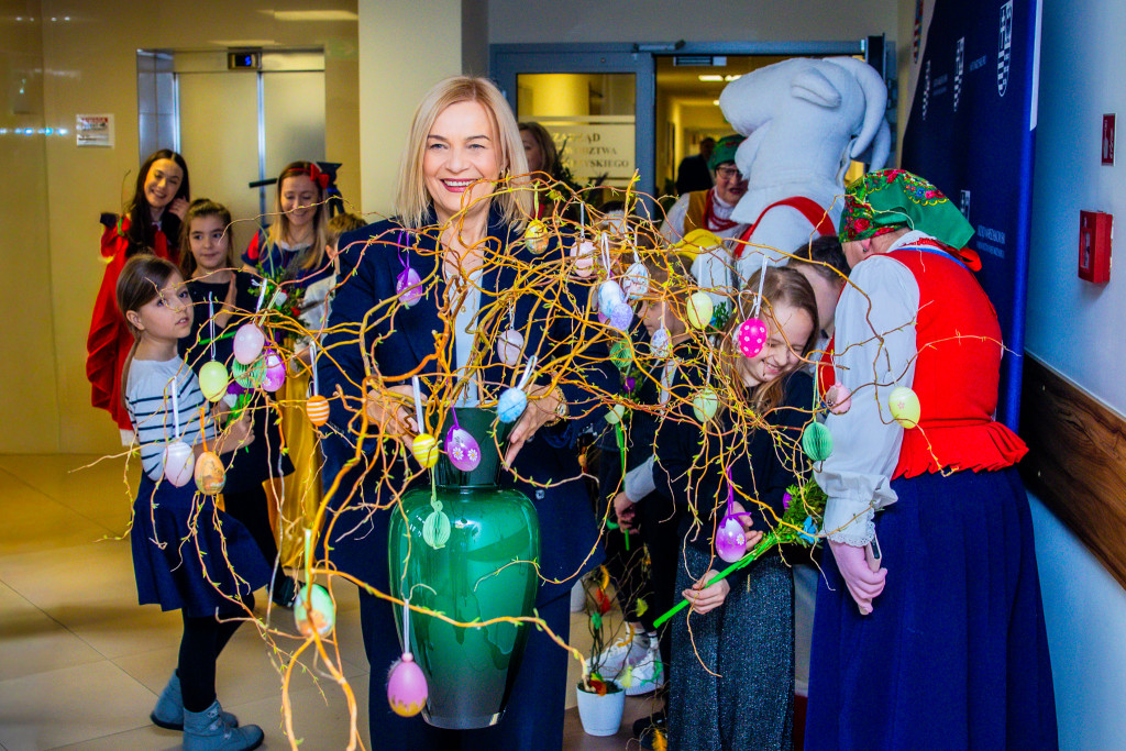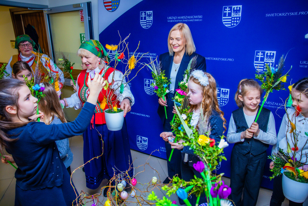 Marszałek Renata Janik powiedziała: – Z radością kontynuujemy naszą międzypokoleniową inicjatywę, która przed Wielkanocą, doczekała się swojej drugiej edycji. Gościmy panie z KGW Kakonianki oraz dzieci z klasy 2d z kieleckiej Szkoły Podstawowej Integracyjnej nr 11, by wspólnie pielęgnować nasze najpiękniejsze tradycje. To wyjątkowy czas: dzieci nie tylko własnoręcznie przygotują palmy i pisanki, ale także dowiedzą się od doświadczonych gospodyń, co i dlaczego powinno znaleźć się w świątecznym koszyczku.