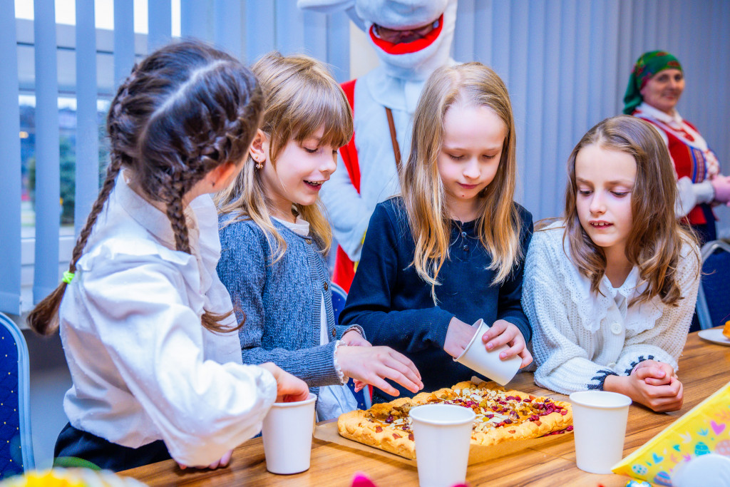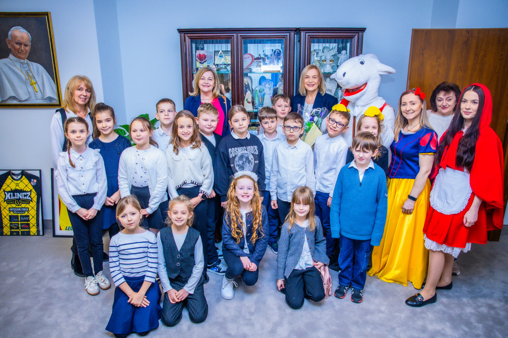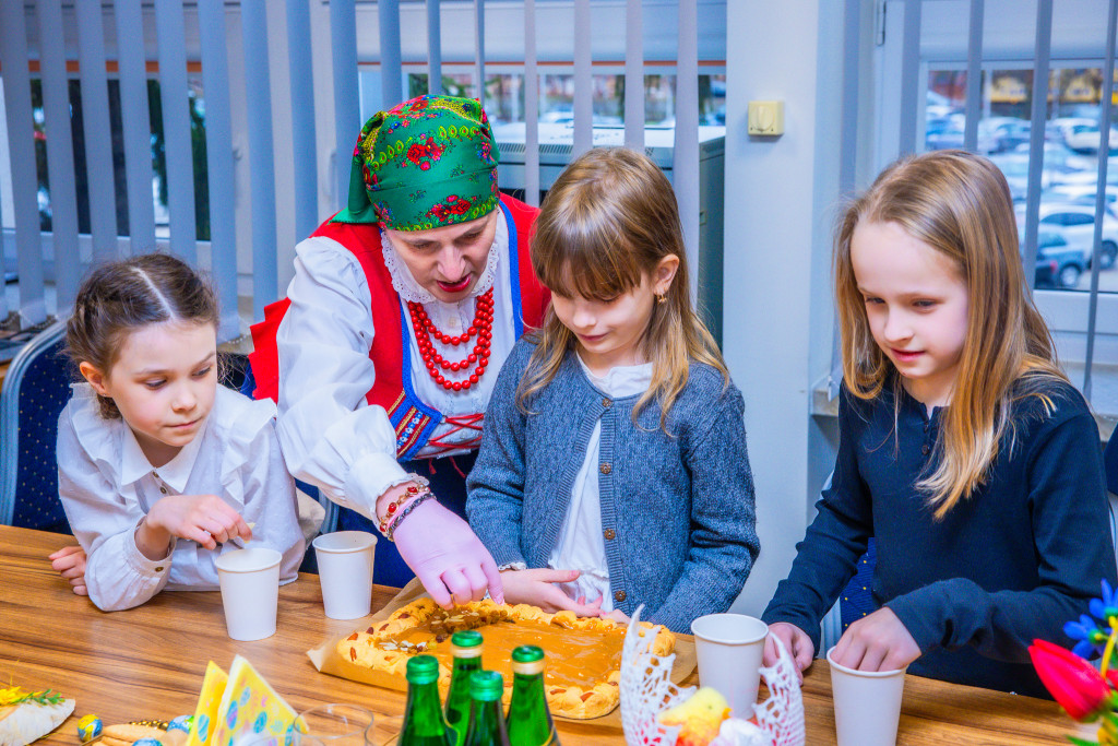 Sala konferencyjna naszego Urzędu wypełniła się dzisiaj gwarem dziecięcej radości i zapachem świątecznych wypieków. W warsztatach międzypokoleniowych wzięła udział grupa drugoklasistów, którzy w towarzystwie marszałek Renaty Janik, członek Zarządu Anity Koniusz oraz wspaniałych Pań z Koła Gospodyń Wiejskich z gminy Bieliny “Śwarne Kakonianki” poznawali ludowe obrzędy. Prawdziwą niespodziankę sprawiły dzieciom baśniowe postacie z Centrum Bajki w Pacanowie – Koziołek Matołek, Królewna Śnieżka oraz Czerwony Kapturek.