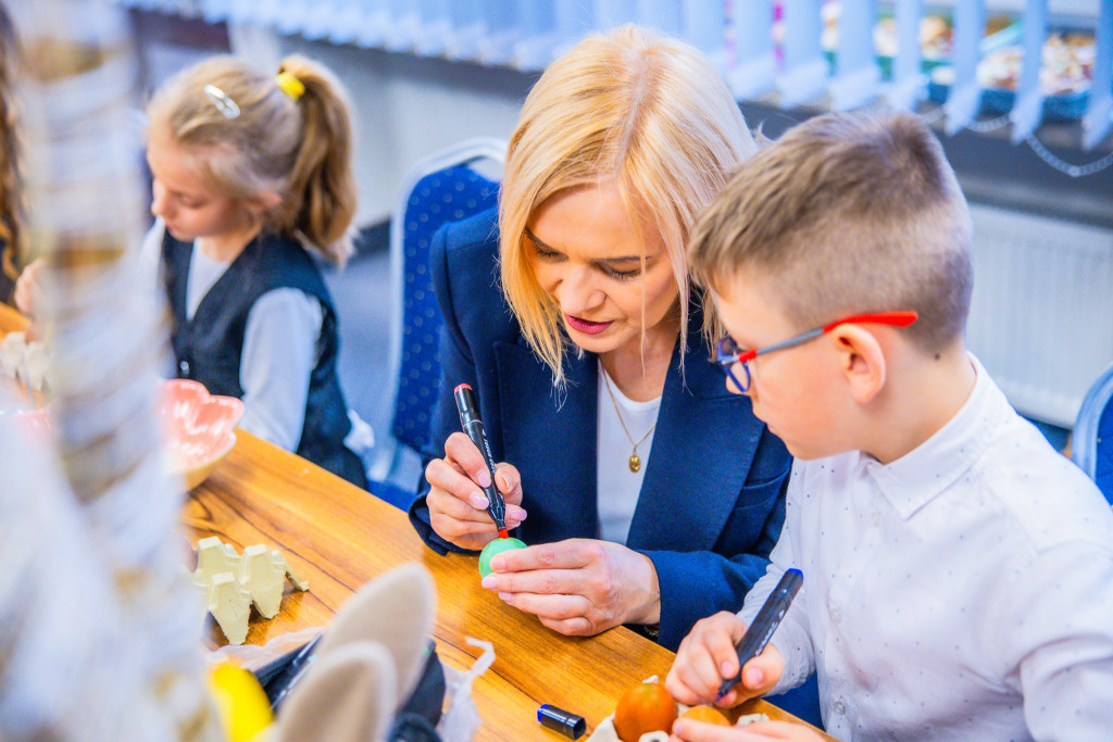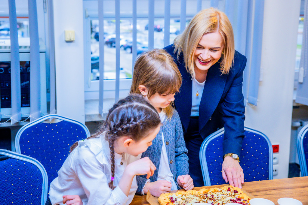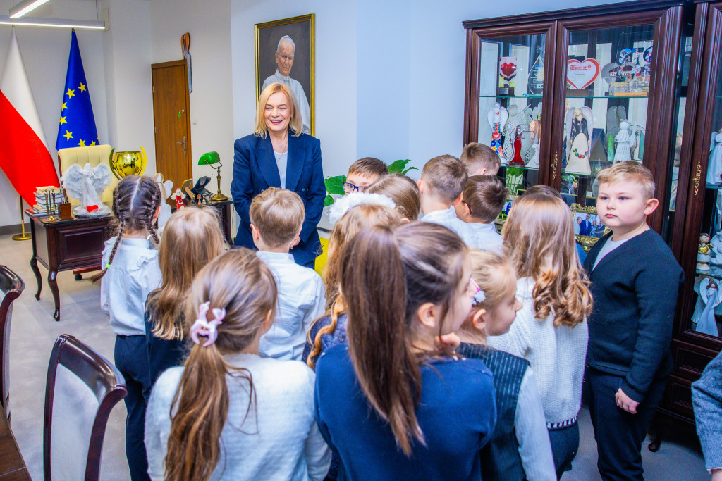Marszałek Renata Janik oraz członek Zarządu Anita Koniusz nie tylko przywitały młodych gości, ale również aktywnie towarzyszyły im podczas pracy, zachęcając do zadawania pytań o świętokrzyskie zwyczaje.