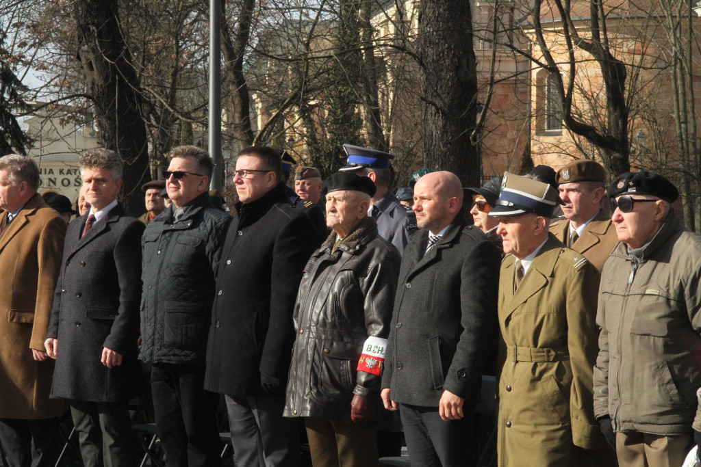 W uroczystościach w Kielcach uczestniczyli parlamentarzyści Ziemi Świętokrzyskiej Krzysztof Słoń i Jarosław Rusiecki, kombatanci, delegacje pocztów sztandarowych, Kielczanie.