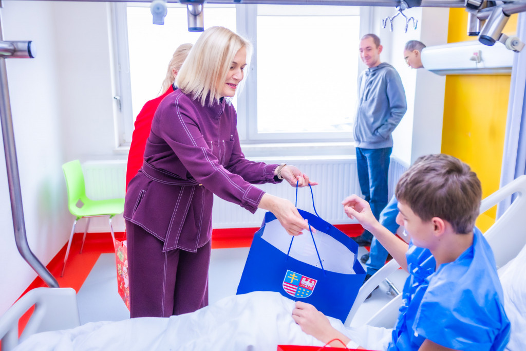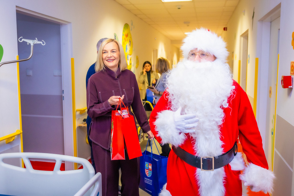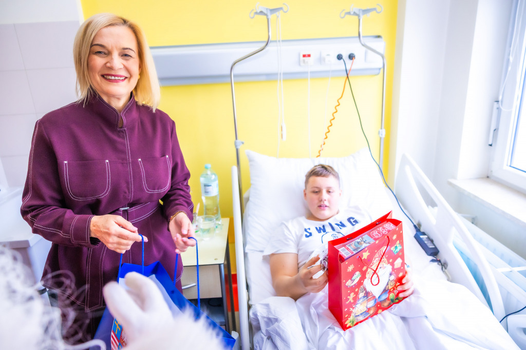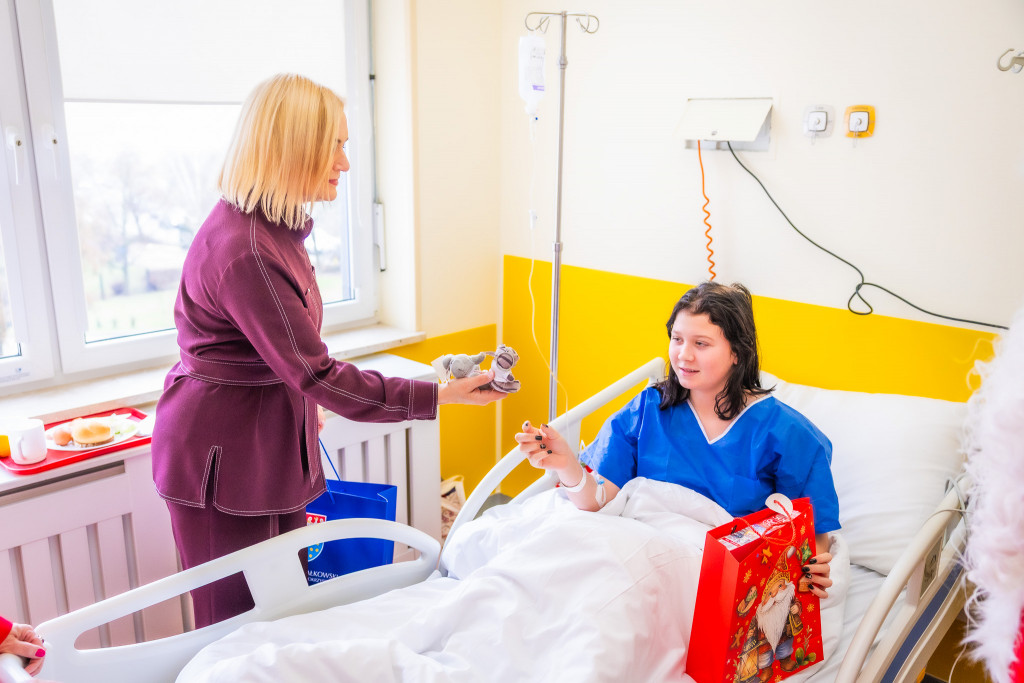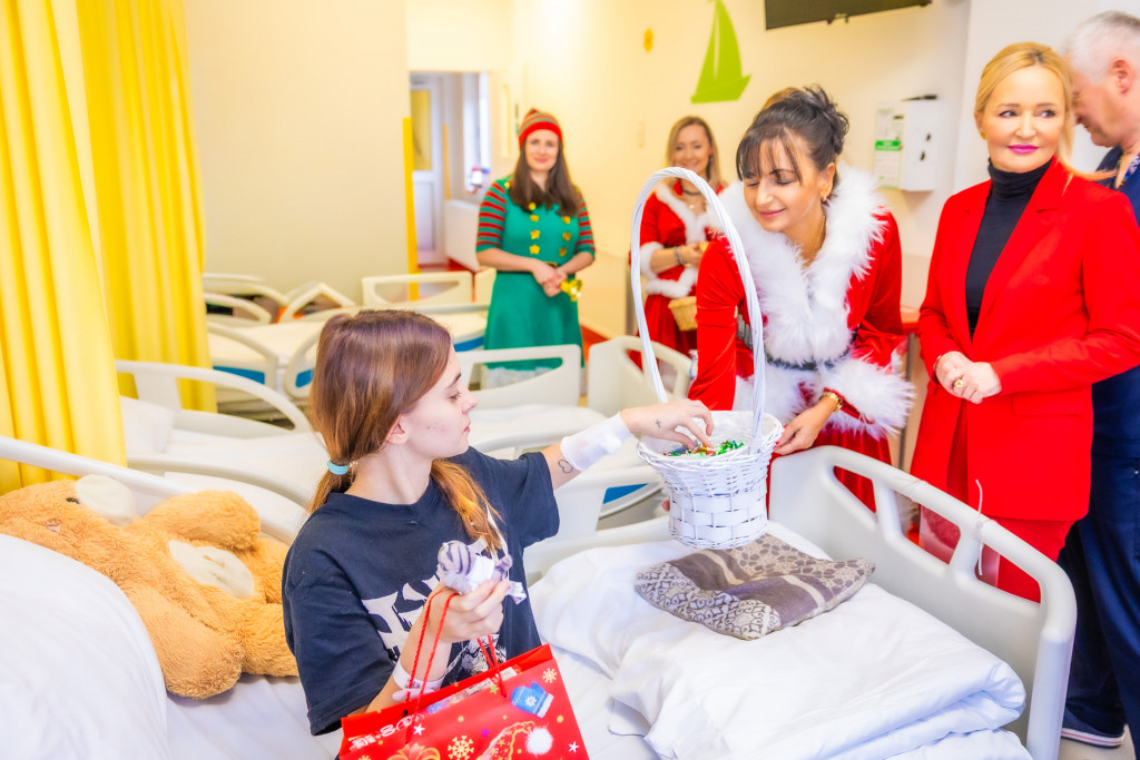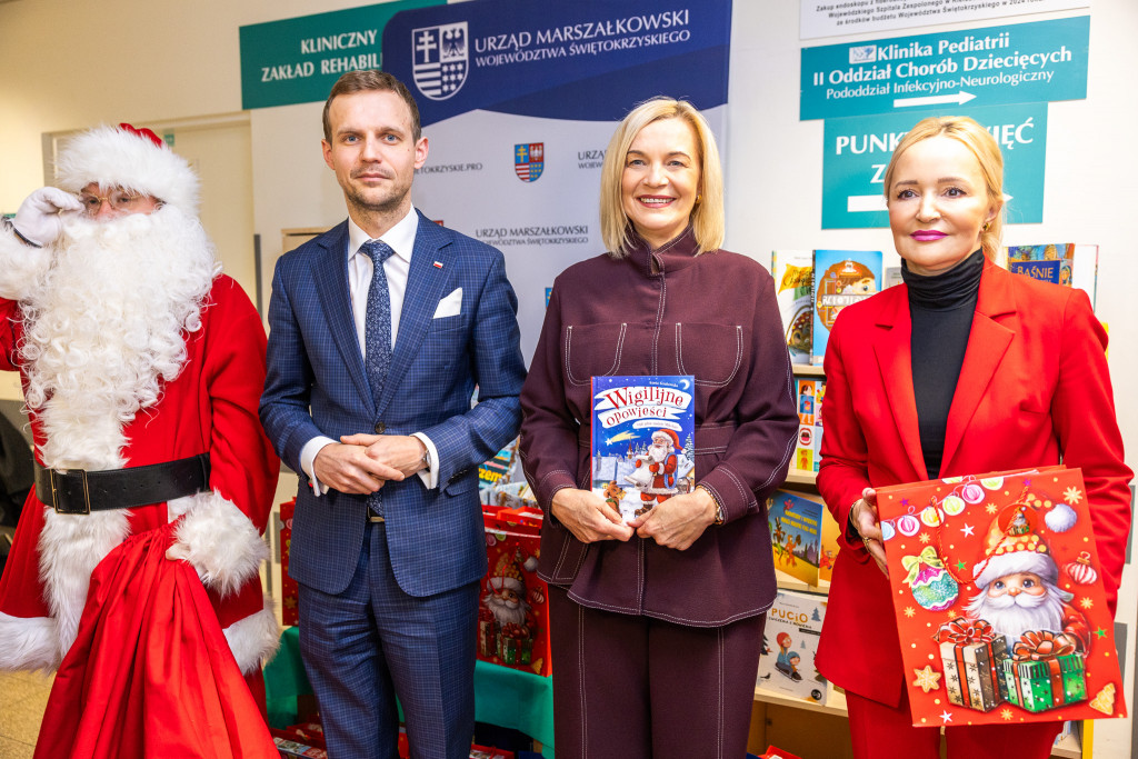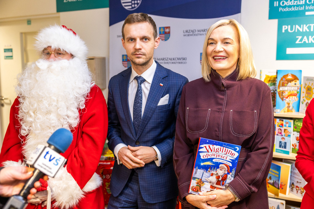 W Świętokrzyskim Centrum Pediatrii w Kielcach zapanowała dziś wyjątkowa, świąteczna atmosfera. Na wszystkich Oddziałach szpitalika zawitał Mikołaj, a wraz z nim marszałek Renata Janik oraz dyrektor Wojewódzkiej Biblioteki Publicznej Agnieszka Kuś, niosąc najmłodszym pacjentom prezenty pełne ciepła: książki oraz pluszowe zabawki, które od razu wywoływały uśmiechy na dziecięcych twarzach. Odwiedzając kolejne oddziały „Szpitalika Dziecięcego”razem z elfami i śnieżynkami z Europejskiego Centrum Bajki w Pacanowie  panie rozmawiały z dziećmi, słuchały ich opowieści, dodawały otuchy i wręczały upominki – takie, które choć na chwilę pozwalają oderwać się od myśli o chorobie i zanurzyć w świat zabawy oraz wyobraźni.