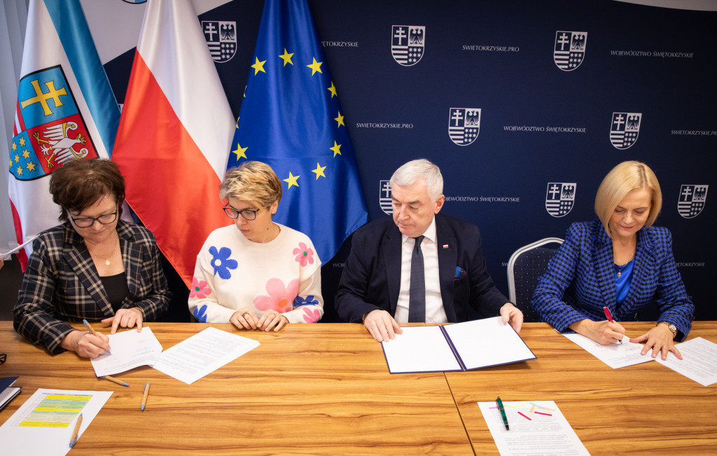 18 przedszkoli ze świętokrzyskich gmin otrzymało 7,5 mln zł dofinansowania na projekty z nowego programu regionalnego Fundusze Europejskie dla Świętokrzyskiego 2021-2027. Wsparciem zostanie objętych 1355 osób, co przełoży się na podniesienie jakości oferty edukacyjnej w tych placówkach. Umowy na „przedszkolne projekty” podpisali dziś z wnioskodawcami marszałek Andrzej Bętkowski, wicemarszałek Renata Janik. W wydarzeniu uczestniczyli dyrektor Departamentu Wdrażania Europejskiego Funduszu Społecznego Katarzyna Kubicka i jej zastępca Artur Potaczała.