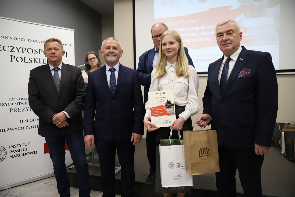– Każda lokalna społeczność ma swoją historię i budowaną odrębną tożsamość – przyznał dr hab. prof. UJK Jerzy Gapys z Instytutu Historii Uniwersytetu Jana Kochanowskiego w Kielcach, członek jury konkursu. – Przed laty badałem pamięć zbiorową małych społeczności i okazało się, że pamiętamy najbardziej to, co wydarzyło się do 100 lat wstecz. Z wydarzeń wieku XX najbardziej zapamiętane są fakty związane z II wojną światową i okresem międzywojnia. Powoli odchodzą świadkowie tamtych wydarzeń, warto więc utrwalać ich wspomnienia, tragiczne wydarzenia dotyczące określonych rodzin. Cenne jest też to, że młodzież biorąca udział w konkursie zainteresowała się nie tylko losami swoich najbliższych, członków rodziny czy sąsiadów, ale też dała nakłonić się i zainspirować przez nauczycieli, by szukać w źródłach historycznych, tworzyć filmy, wywiady, pamiętniki, prace plastyczne – dodał.