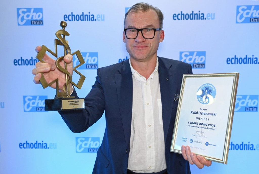 Pierwsze miejsce w plebiscycie “Hipokrates 2025” zdobył Rafał Cyranowski, specjalista ortopedii z Wojewódzkiego Szpitala Specjalistycznego im. św. Rafała w Czerwonej Górze.