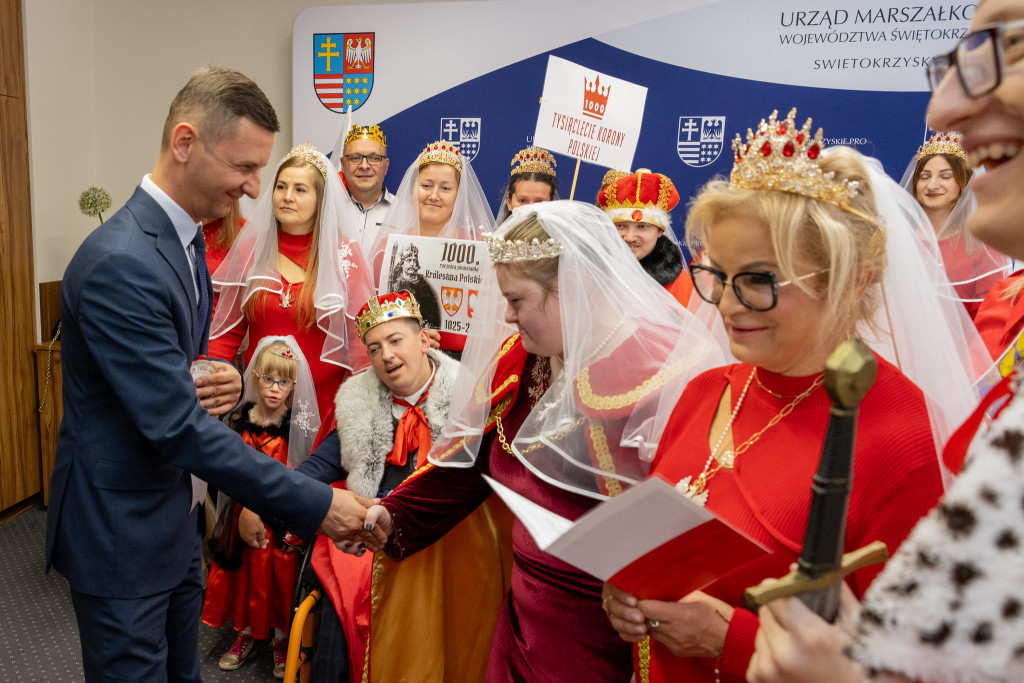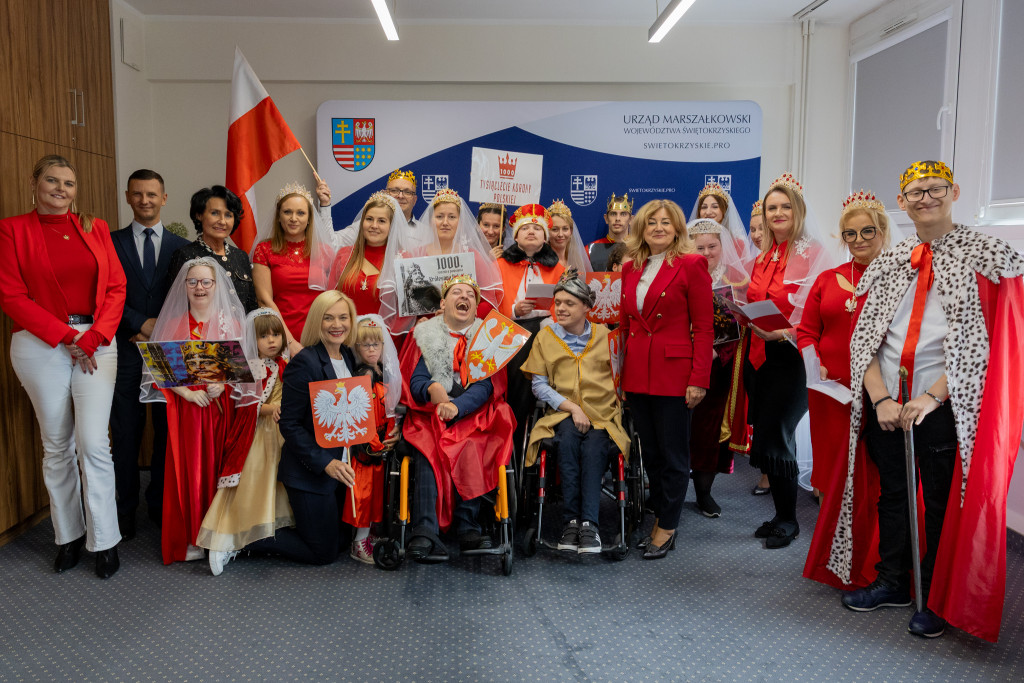 Dzieci i młodzież przygotowali specjalną piosenkę-niespodziankę, którą zaśpiewali dla pani marszałek. Wręczyli również własnoręcznie przygotowany kotylion z wizerunkiem Bolesława Chrobrego, nawiązujący do trwających obchodów 1000-lecia koronacji pierwszego króla Polski. Kotyliony otrzymali też dyrektor ROPS Elżbieta Korus oraz kierownik ROPS Damian Gad.