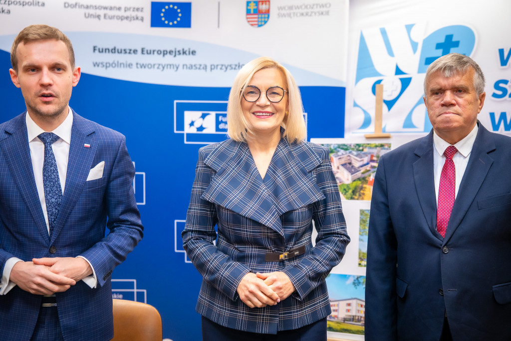 W Wojewódzkim Szpitalu Zespolonym w Kielcach rozbudowane i zmodernizowane zostaną pomieszczenia Przychodni Przyszpitalnej dla osób dorosłych i Świętokrzyskiego Centrum Pediatrii. Tu znajdą się gabinety poradni specjalistycznych dla świętokrzyskich pacjentów. Inwestycja otrzyma dofinansowanie z Europejskiego Funduszu Rozwoju Regionalnego w kwocie 17 457 636,53 zł. Całkowita przewidywana wartość projektu pt. „Wzmocnienie ambulatoryjnej opieki specjalistycznej w Wojewódzkim Szpitalu Zespolonym w Kielcach” ma wynieść 36 670 511,97 zł. Umowę na dofinansowanie prac podpisali marszałek województwa Renata Janik i dyrektor Wojewódzkiego Szpitala Zespolonego w Kielcach Marcin Martyniak. Obecni byli również wiceprzewodniczący Sejmiku Województwa Mieczysław Gębski i radny Sejmiku Kazimierz Mądzik.