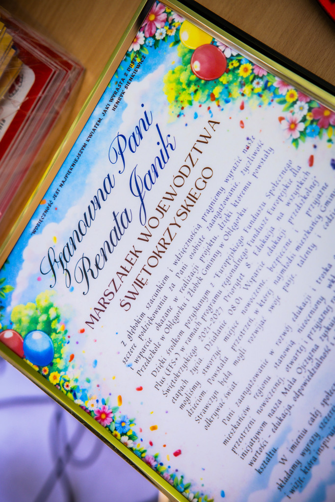– Otwierane dzisiaj przedszkole to inwestycja w jakość, w rozwój, w przyszłość naszych dzieci – powiedziała marszałek Renata Janik. – To właśnie środki europejskie sprawiają, że ten budynek wypełnia się życiem, nowoczesnym wyposażeniem, profesjonalną opieką i ambitnym programem edukacyjnym. Ta inwestycja pokazuje, że samorząd województwa skutecznie sięga po fundusze europejskie i przekłada je na konkretne działania blisko ludzi – tu, w powiecie kieleckim, w gminie Strawczyn, w Oblęgorku. Wierzę, że to miejsce będzie przestrzenią radosnego dzieciństwa, pierwszych przyjaźni i odkrywania świata. Bo inwestując w najmłodszych, inwestujemy w przyszłość całego regionu świętokrzyskiego.
