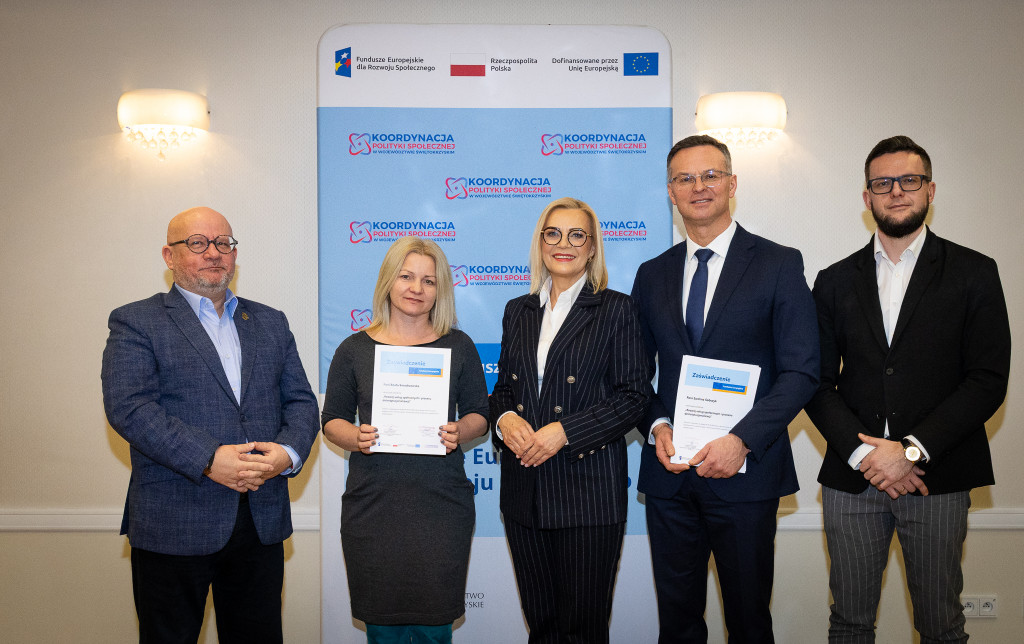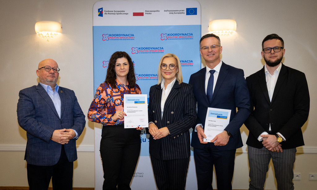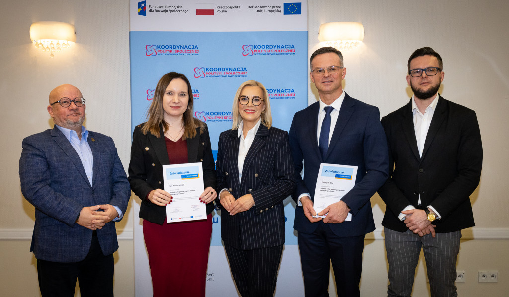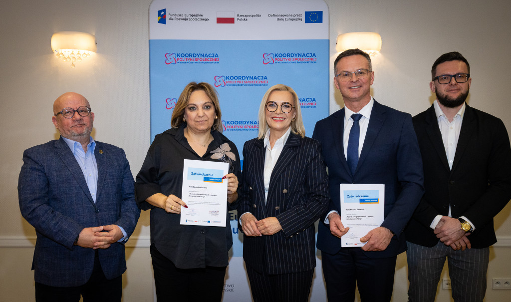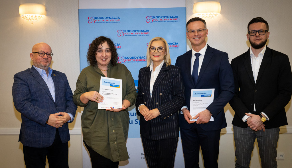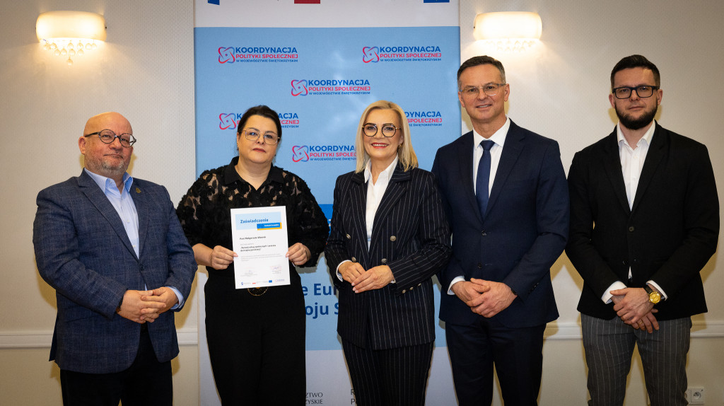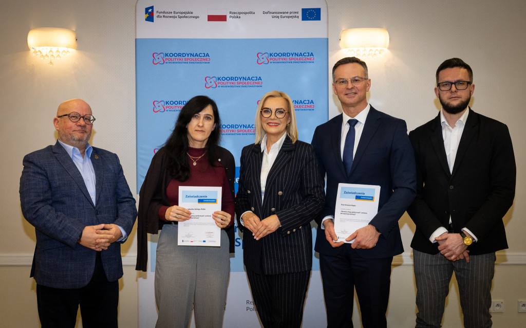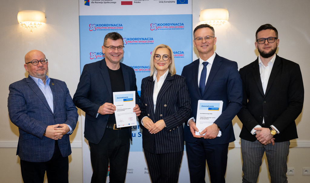 Województwo świętokrzyskie stawia na rozwój usług społecznych świadczonych w społeczności lokalnej. Marszałek Renata Janik wręczyła dziś certyfikaty uczestnikom specjalistycznego szkolenia, które przygotowuje przedstawicieli instytucji pomocy i integracji społecznej oraz podmiotów działających na rzecz włączenia społecznego z naszego regionu do wdrażania procesu deinstytucjonalizacji. To ważny krok w stronę budowy systemu wsparcia realnie odpowiadającego na potrzeby mieszkańców. W spotkaniu uczestniczył zastępca dyrektora Regionalnego Ośrodka Polityki Społecznej Arkadiusz Ślipikowski. Cykl szkoleniowy realizowany był w ramach projektu „Koordynacja Polityki Społecznej w województwie świętokrzyskim”.