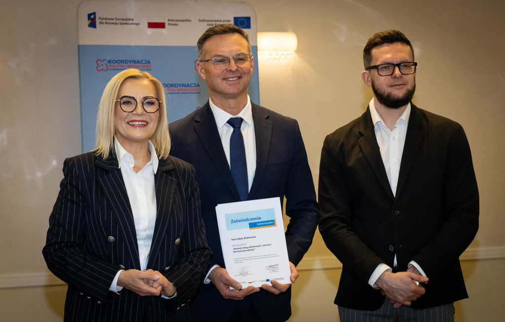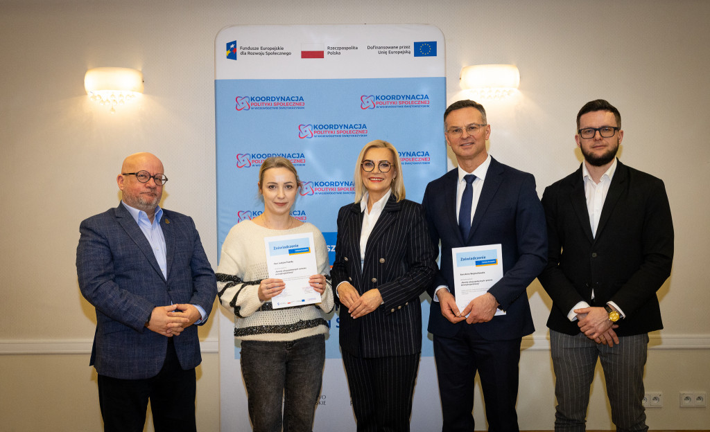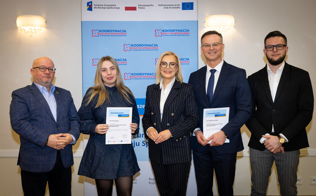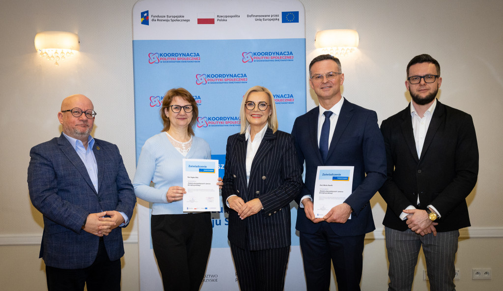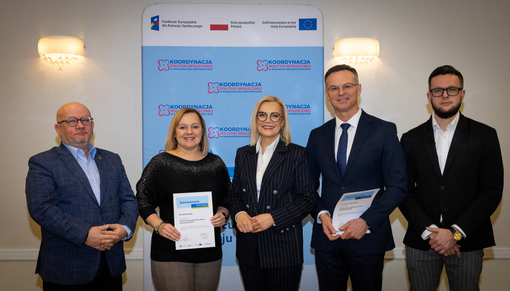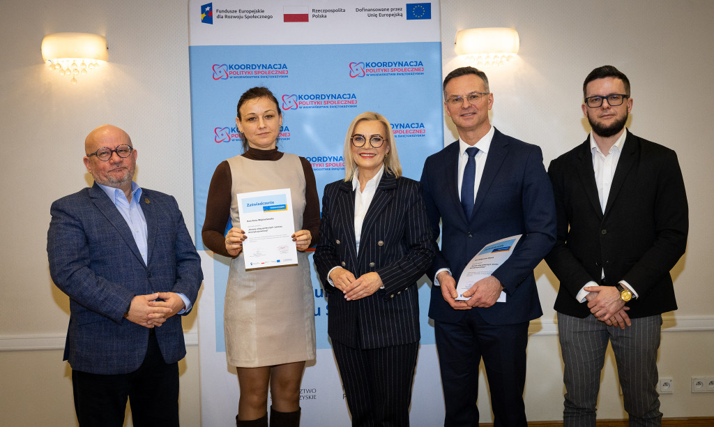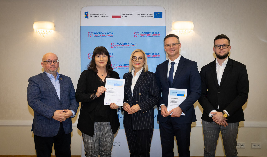 Województwo świętokrzyskie stawia na rozwój usług społecznych świadczonych w społeczności lokalnej. Marszałek Renata Janik wręczyła dziś certyfikaty uczestnikom specjalistycznego szkolenia, które przygotowuje przedstawicieli instytucji pomocy i integracji społecznej oraz podmiotów działających na rzecz włączenia społecznego z naszego regionu do wdrażania procesu deinstytucjonalizacji. To ważny krok w stronę budowy systemu wsparcia realnie odpowiadającego na potrzeby mieszkańców. W spotkaniu uczestniczył zastępca dyrektora Regionalnego Ośrodka Polityki Społecznej Arkadiusz Ślipikowski. Cykl szkoleniowy realizowany był w ramach projektu „Koordynacja Polityki Społecznej w województwie świętokrzyskim”.