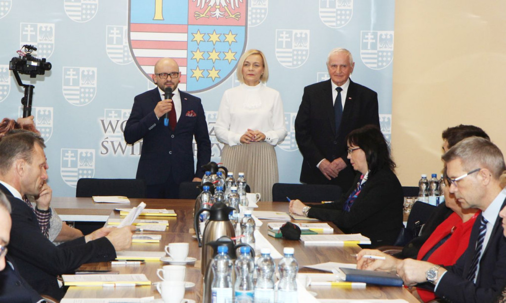 Zarząd Województwa Świętokrzyskiego spotkał się z prezydentem Kielc, burmistrzami i wójtami z terenu powiatu kieleckiego, aby przedstawić zakres i harmonogram konkursów organizowanych w ramach dostępnych środków Europejskiego Funduszu Rozwoju Regionalnego oraz Europejskiego Funduszu Społecznego na lata 2014-2020 oraz zachęcić do rozpropagowania ich na podległych sobie obszarach. To pierwsze z cyklu zaplanowanych spotkań informacyjnych z samorządowcami z województwa świętokrzyskiego.