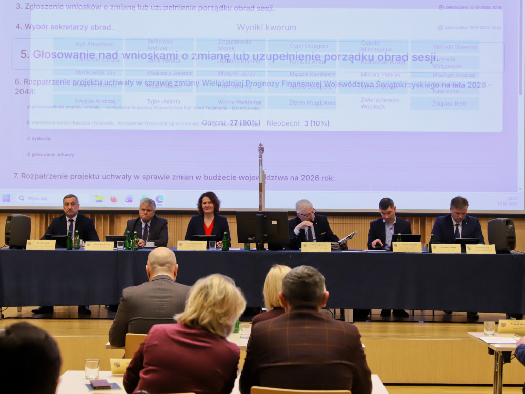 Radni Sejmiku Województwa przegłosowali uchwały w sprawie zmiany Wieloletniej Prognozy Finansowej Województwa Świętokrzyskiego na lata 2026 – 2048 i w sprawie zmian w budżecie województwa na 2026 rok. Związane są one z przywróceniem do tegorocznego budżetu województwa środków finansowych, niewykorzystanych w roku 2025 r.