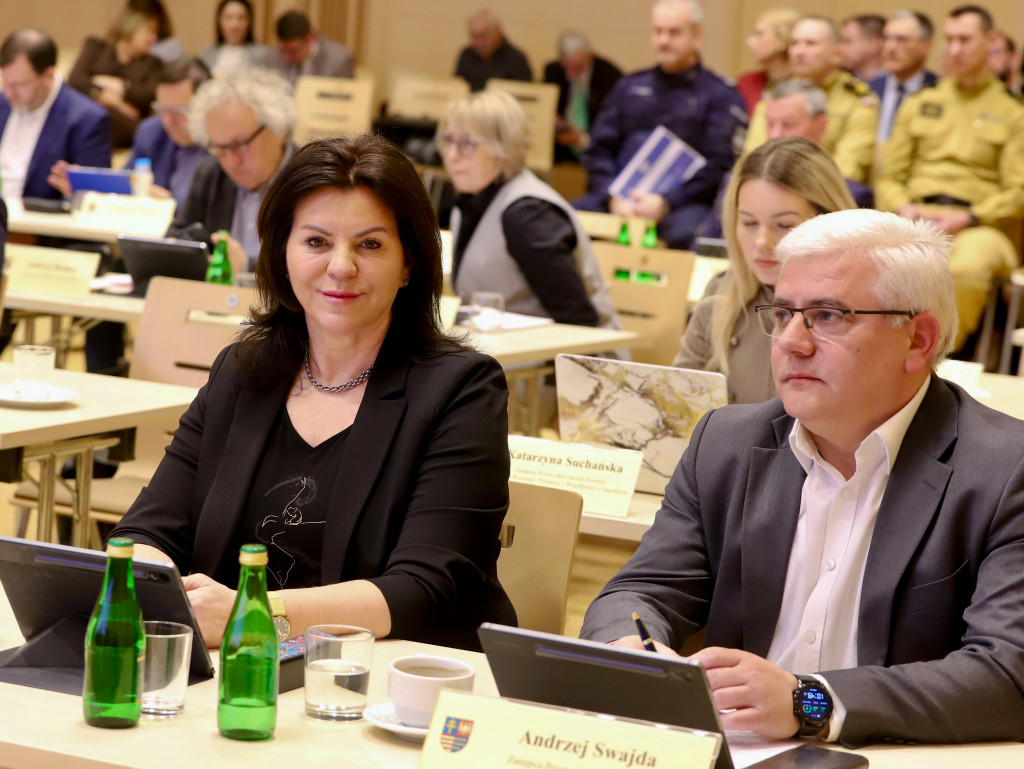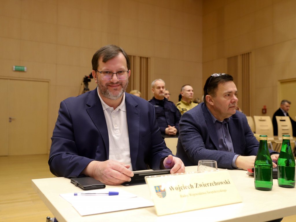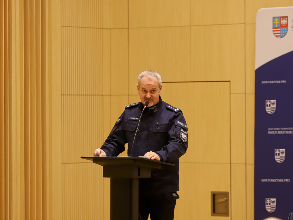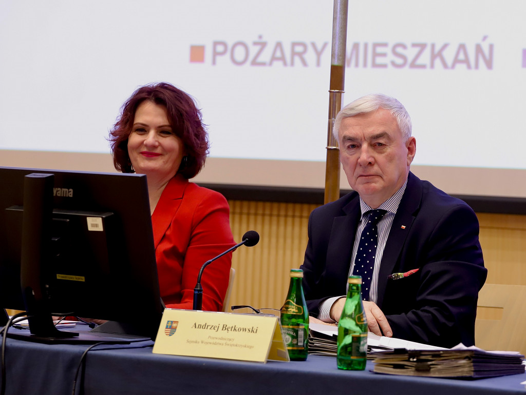 Radni Sejmiku wysłuchali Informacji Komendanta Wojewódzkiego Policji w Kielcach nt. stanu bezpieczeństwa na terenie województwa świętokrzyskiego w 2025 roku, przedstawionej przez insp. Tomasza Jarosza zastępcę Komendanta Wojewódzkiego Policji, oraz Informacji Świętokrzyskiego Komendanta Wojewódzkiego Państwowej Straży Pożarnej w Kielcach o stanie ochrony przeciwpożarowej i funkcjonowaniu Krajowego Systemu Ratowniczo-Gaśniczego oraz działalności OSP na terenie województwa świętokrzyskiego w 2025 roku, przedstawionej przez bryg. Michała Jankowskiego, zastępcę Świętokrzyskiego Komendanta Wojewódzkiego PSP.
