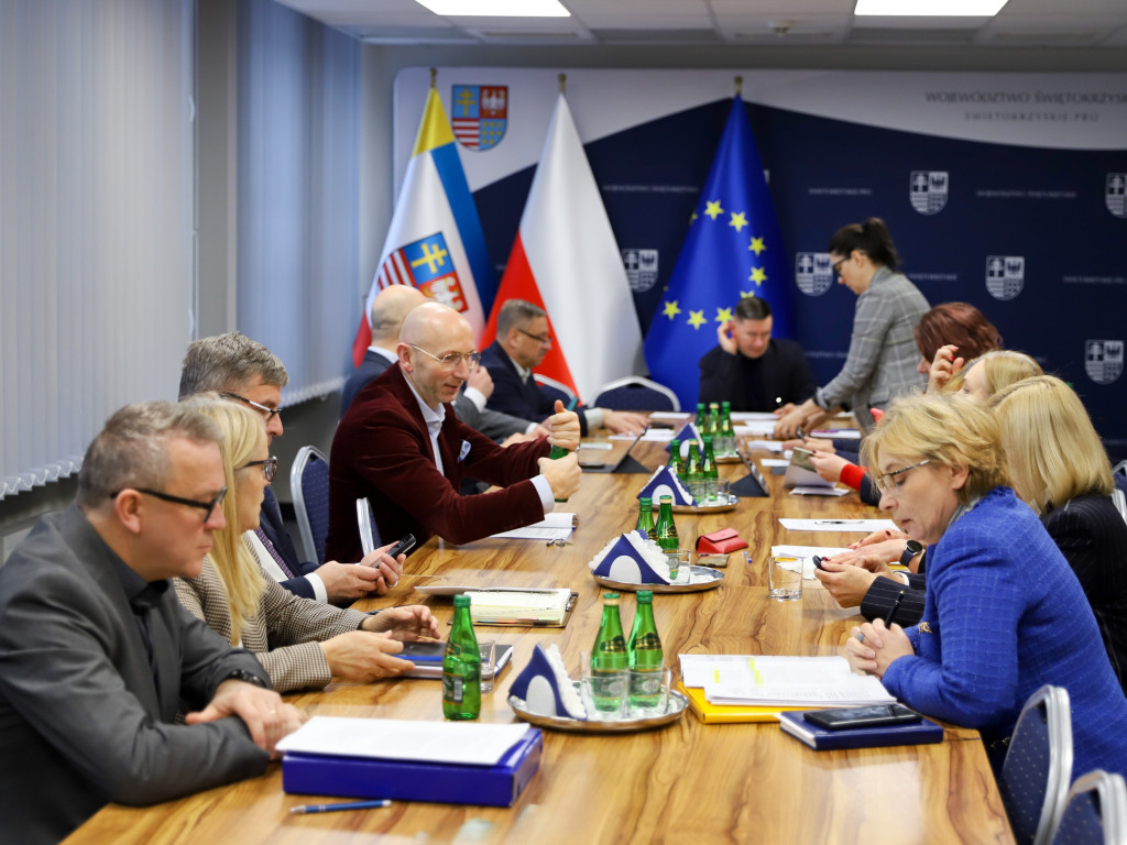 W siedzibie Urzędu Marszałkowskiego Województwa Świętokrzyskiego we wtorek 13 stycznia br. odbyło się posiedzenie Komisji Budżetu i Finansów Sejmiku Województwa Świętokrzyskiego. Obrady poprowadził radny Łukasz Jabłoński. W pracach Komisji wzięli udział marszałek Renata Janik, wicemarszałek Grzegorz Socha oraz członkowie Zarządu Andrzej Pruś i Anita Koniusz.