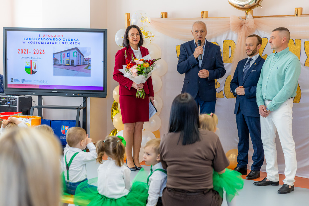 Samorządowy Żłobek w Kostomłotach Drugich świętował dzisiaj swoje piąte urodziny. Uroczystość była okazją do podsumowania dotychczasowych sukcesów placówki, która stała się ważnym punktem na mapie gminy Miedziana Góra.