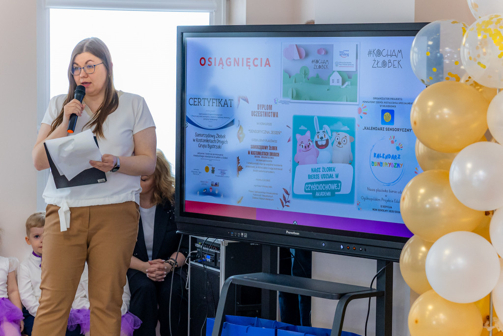 Podczas spotkania marszałek Renata Janik podkreśliła, jak ważną rolę pełnią takie miejsca dla lokalnej społeczności: -Pięć lat w życiu dorosłego to krótka chwila, ale w życiu dziecka to cała epoka. Ten obiekt jest dowodem na to, że zgoda i wspólny cel budują. Dzięki funduszom unijnym – łączna kwota dofinansowania to 3 mln zł, które jako Samorząd Województwa z radością przekazaliśmy, 80 maluchów ma tu najlepszy start w życie, a ich rodzice mogą spokojnie wrócić do aktywności zawodowej. Pani Dyrektor, na Pani ręce składam podziękowania dla całego personelu. To Wasza pasja, ciepło i profesjonalizm sprawiają, że ten nowoczesny budynek staje się dla dzieci drugim domem. Życzę żłobkowi kolejnych lat rozwoju, a wszystkim podopiecznym – uśmiechu, który jest najpiękniejszym potwierdzeniem, że środki, które tu zainwestowaliśmy, były najlepiej wydanymi funduszami w regionie.