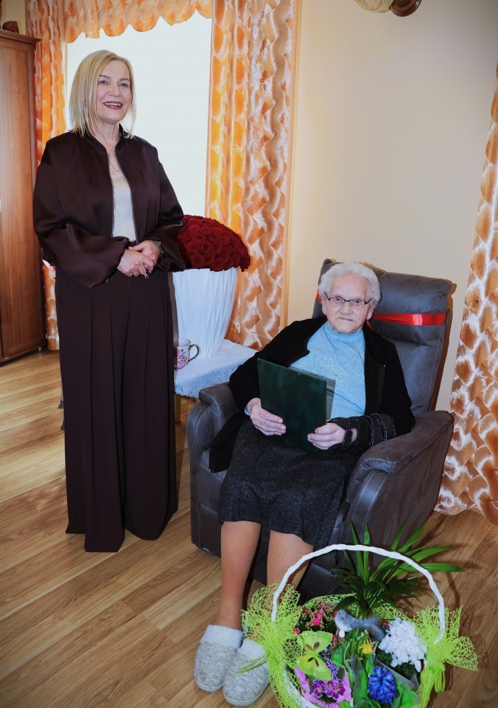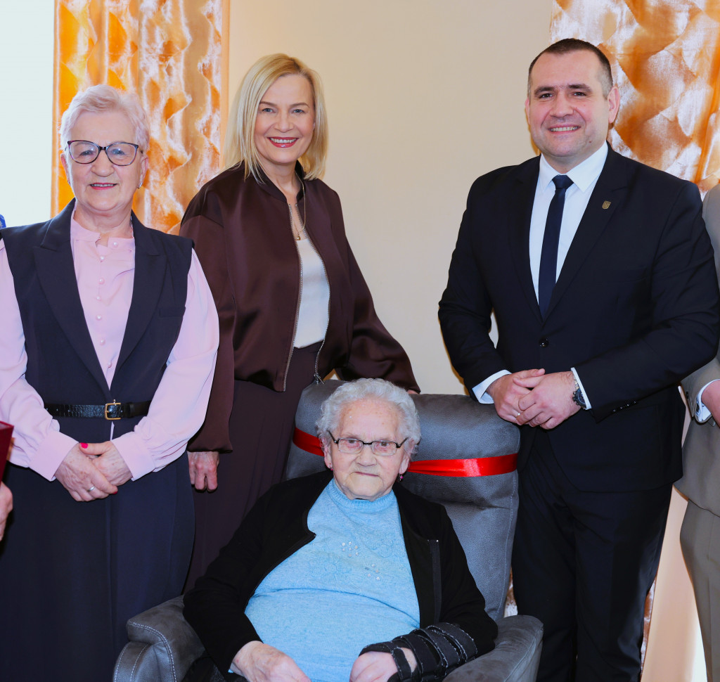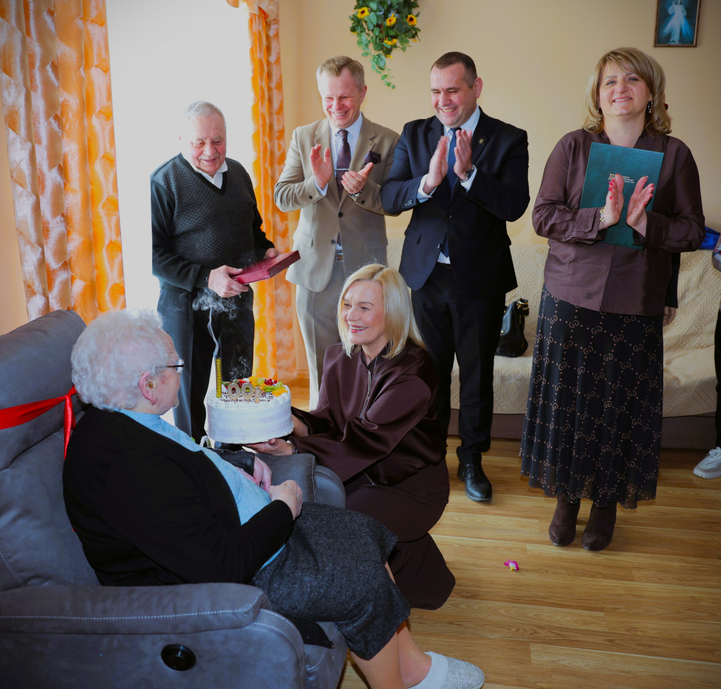 Wizyta w domu solenizantki w Bolechowicach miała niezwykle serdeczny i kameralny charakter. Marszałek Renata Janik, pragnąc osobiście uczcić ten imponujący wiek, złożyła jubilatce życzenia niesłabnącego zdrowia oraz nieustającej pogody ducha na kolejne lata. Wyjątkowość spotkania podkreśliły wręczone podarunki – okolicznościowy upominek, stanowiący pamiątkę tego pięknego jubileuszu, oraz tradycyjny tort urodzinowy, który stał się słodkim akcentem wspólnego świętowania w gronie najbliższych.